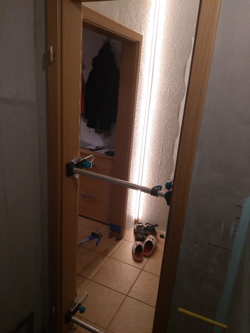 Now, the strips for the edges and the slanting walls and skirting boards are still missing.