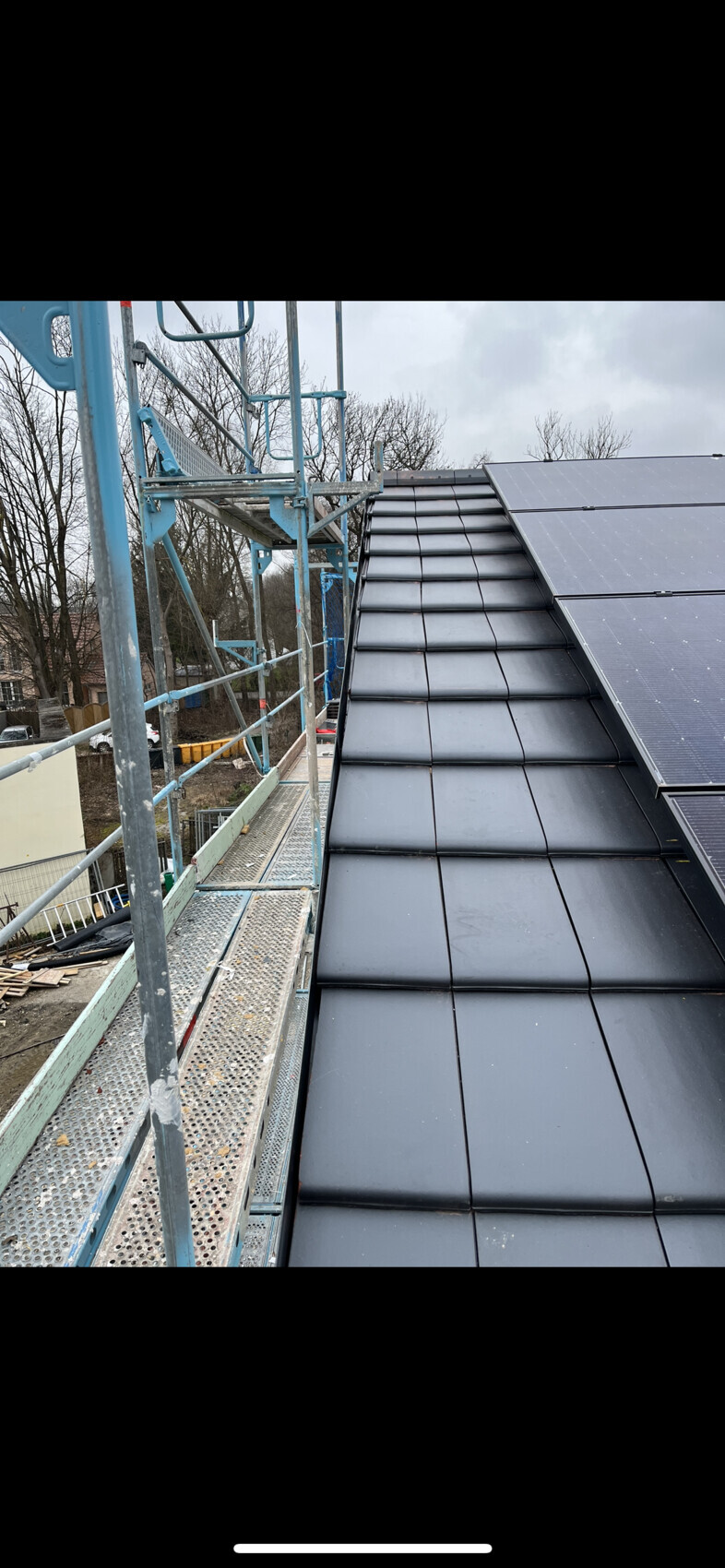 El marco de cubierta está colocado directamente sobre las listones del techo y tiene un reborde trasero de aproximadamente 1 cm de altura. El pensamiento lógico explica por qué la última teja antes de la ventana sobresale un poco. En la conexión con el vecino, la misma situación.