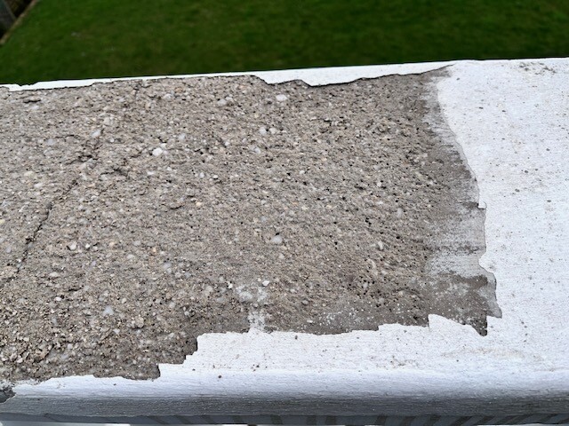 ¿Por qué la balaustrada ha absorbido tanta agua? ¿Mezcla incorrecta? ¿Pintura? ¿La humedad viene de abajo?