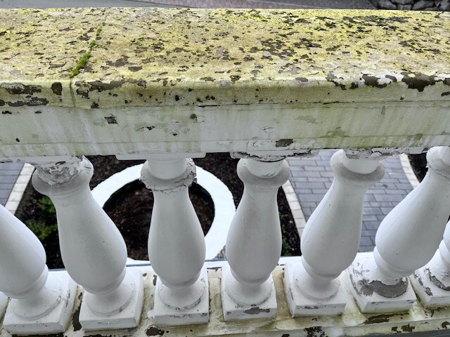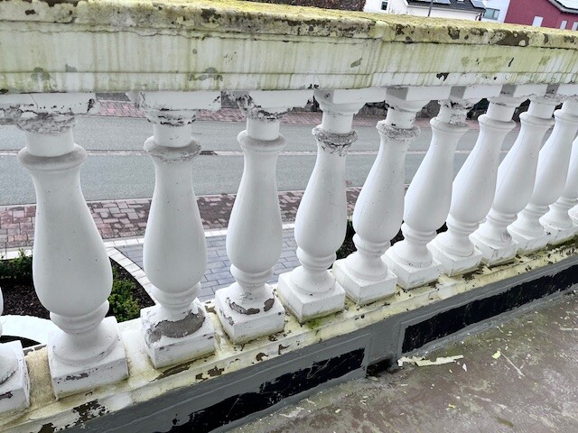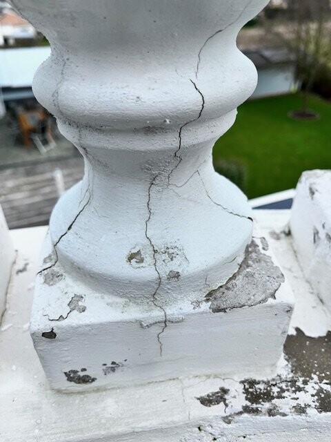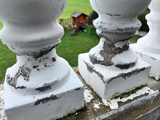 hace aproximadamente 8 años monté las balaustradas. Primero la pintura empezó a desprenderse y ahora, como se ve en las imágenes, comienzan a agrietarse.