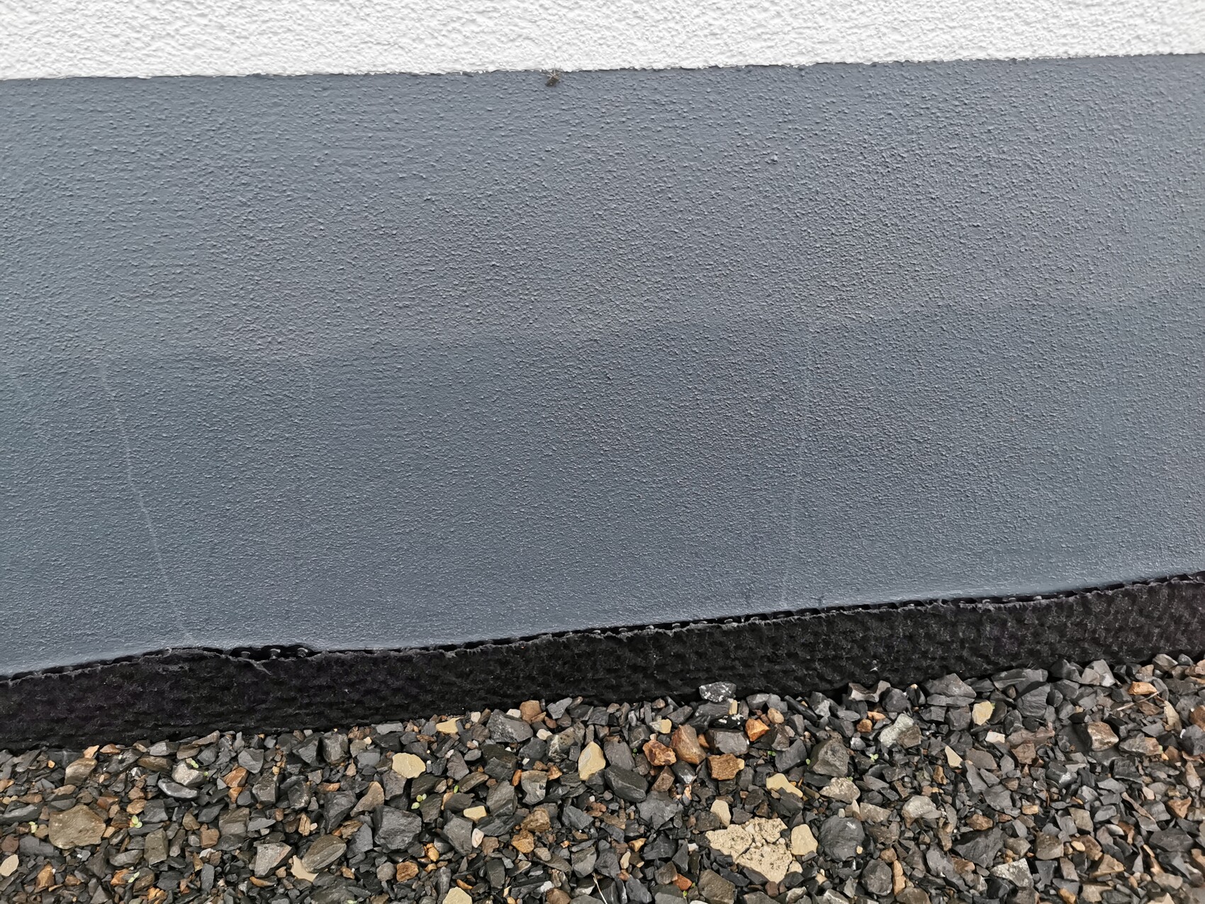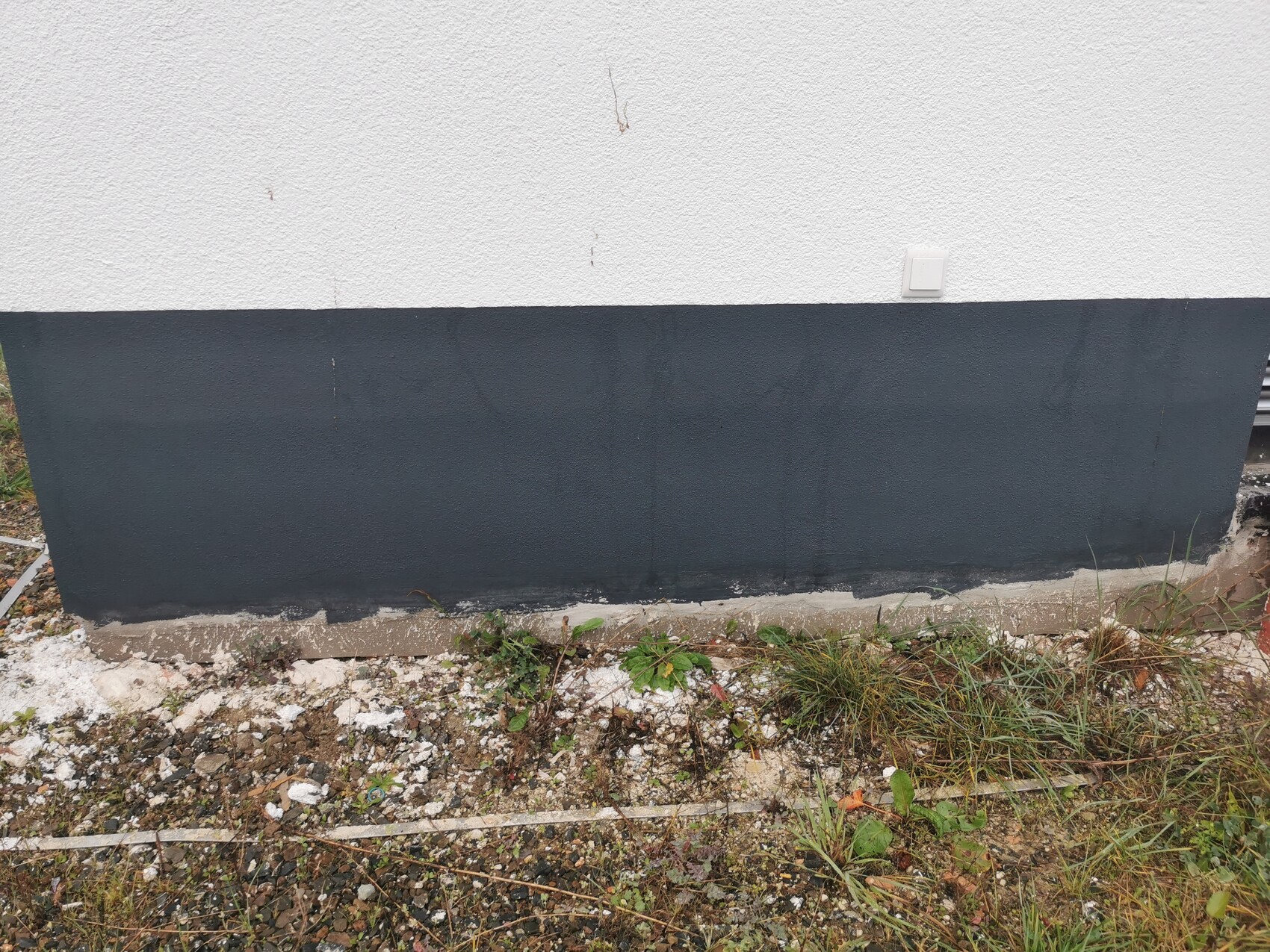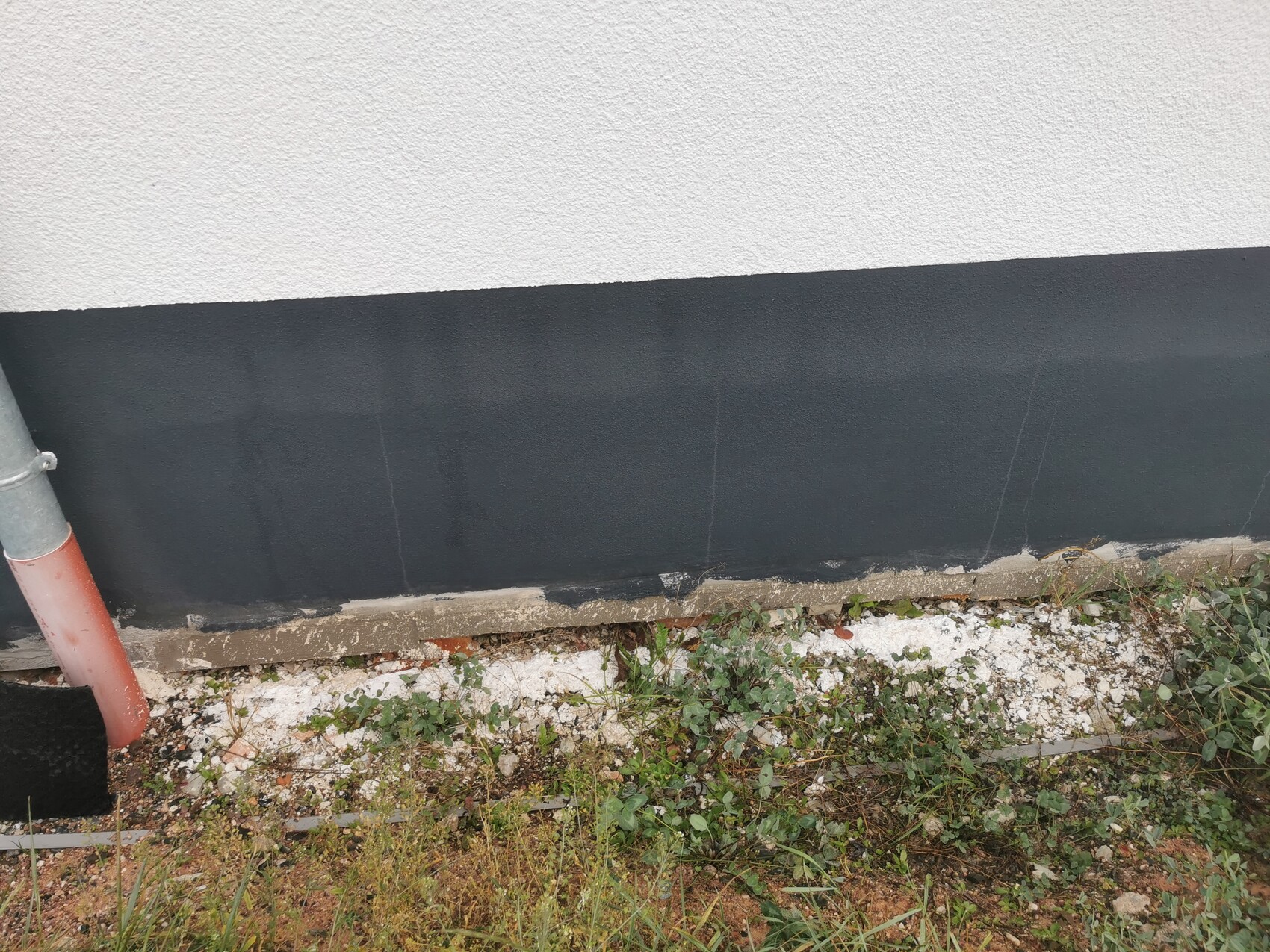 Según la descripción de la obra, soy responsable del sellado según DIN18533 del revestimiento del zócalo contra la humedad de los elementos en contacto con el suelo. Para mí eso significa la aplicación de una capa impermeable en los lugares donde después, tras la obra de las instalaciones externas, habrá contacto con el terreno. ¿Podría ser esto una consecuencia de que aún no se ha aplicado la capa impermeable, aunque todavía no haya contacto con el terreno?