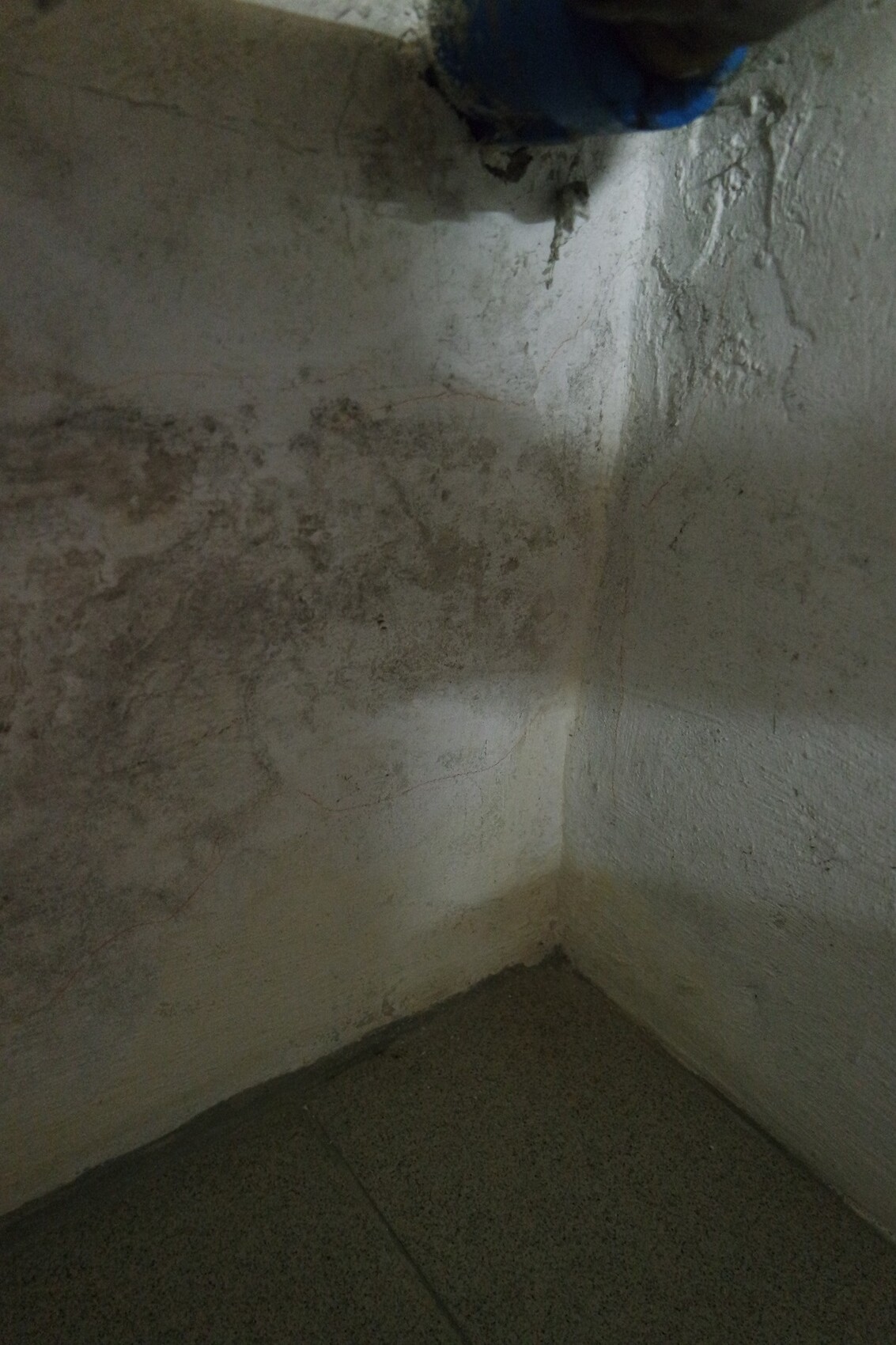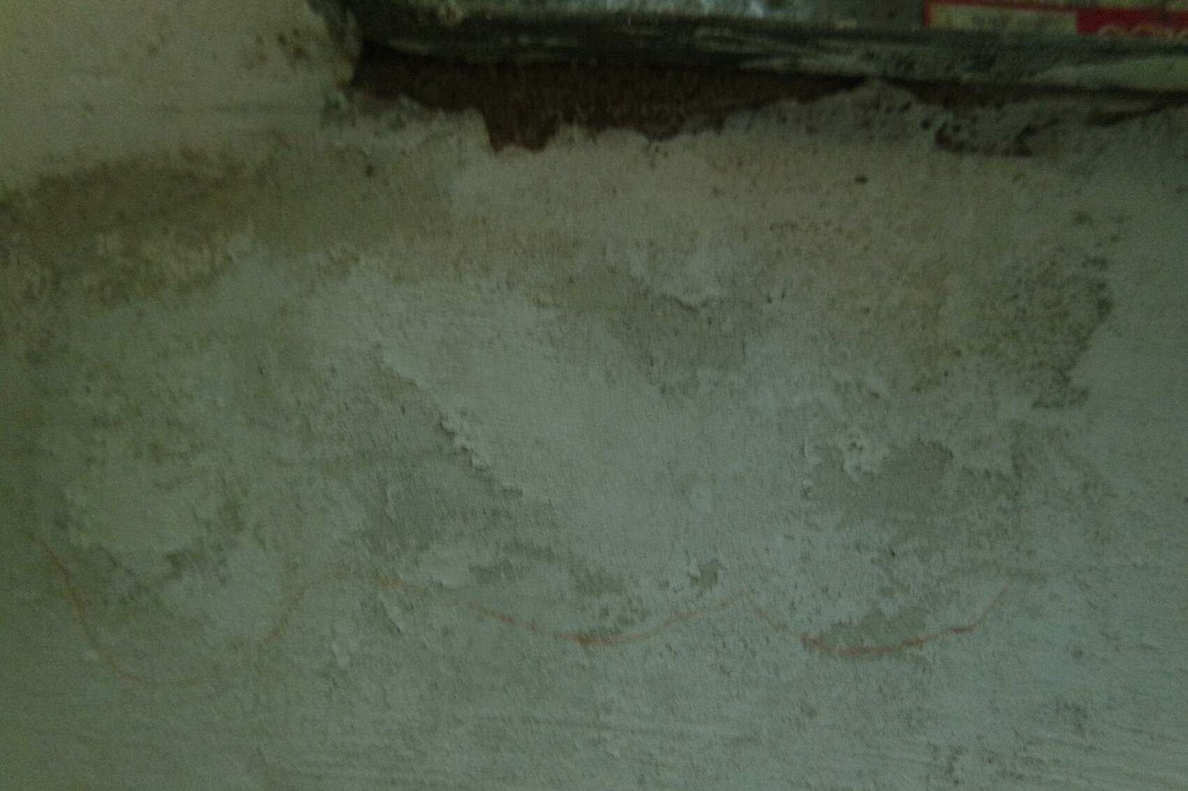 hace tres años compramos una casa. El año de construcción es 1969. Una esquina en el sótano nos preocupa un poco, porque hay desprendimientos de pintura y cambios de color. Hasta ahora hemos tenido suficiente con otras cosas, así que hace aproximadamente 2,5 años señalamos primero las manchas correspondientes en rojo para seguir observándolas. Prestamos mucha atención a ventilar el sótano regularmente. Justo encima de las manchas entran al hogar las tuberías de gas y agua.