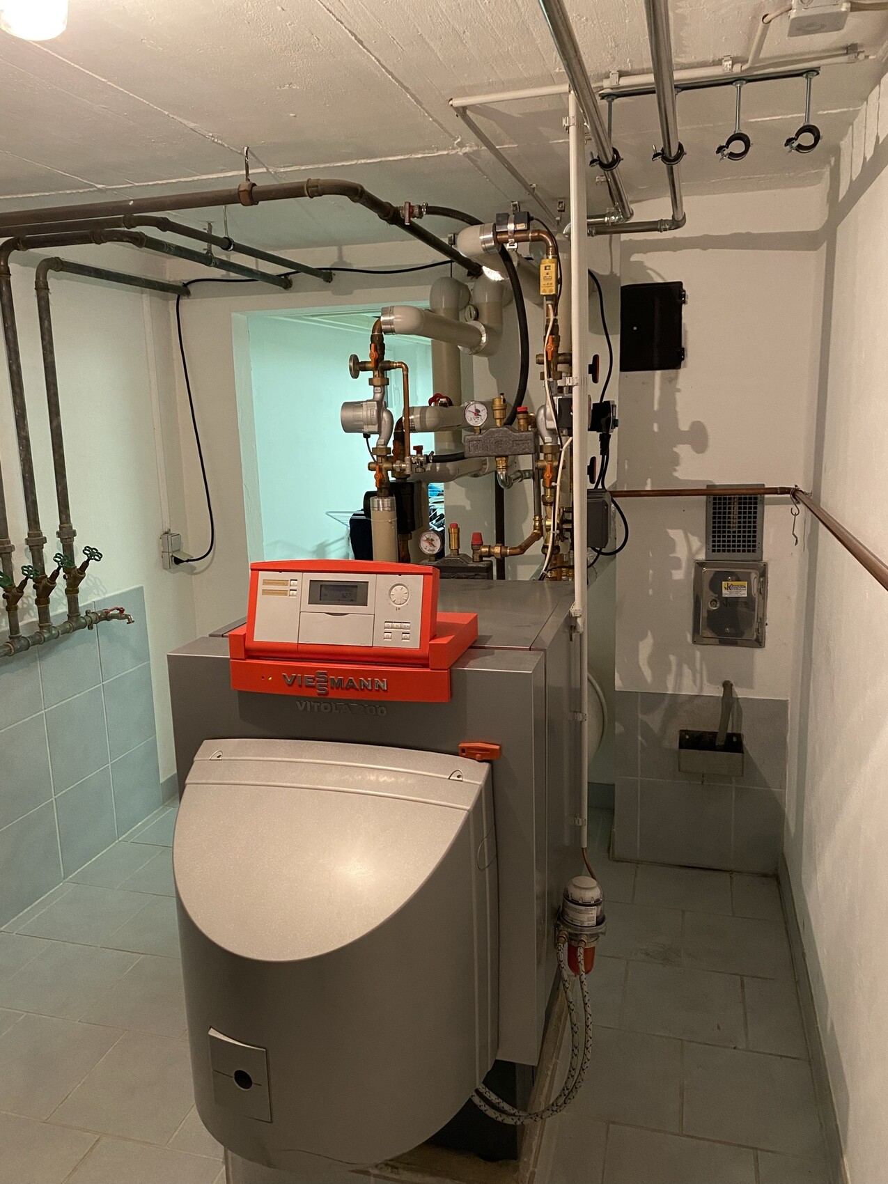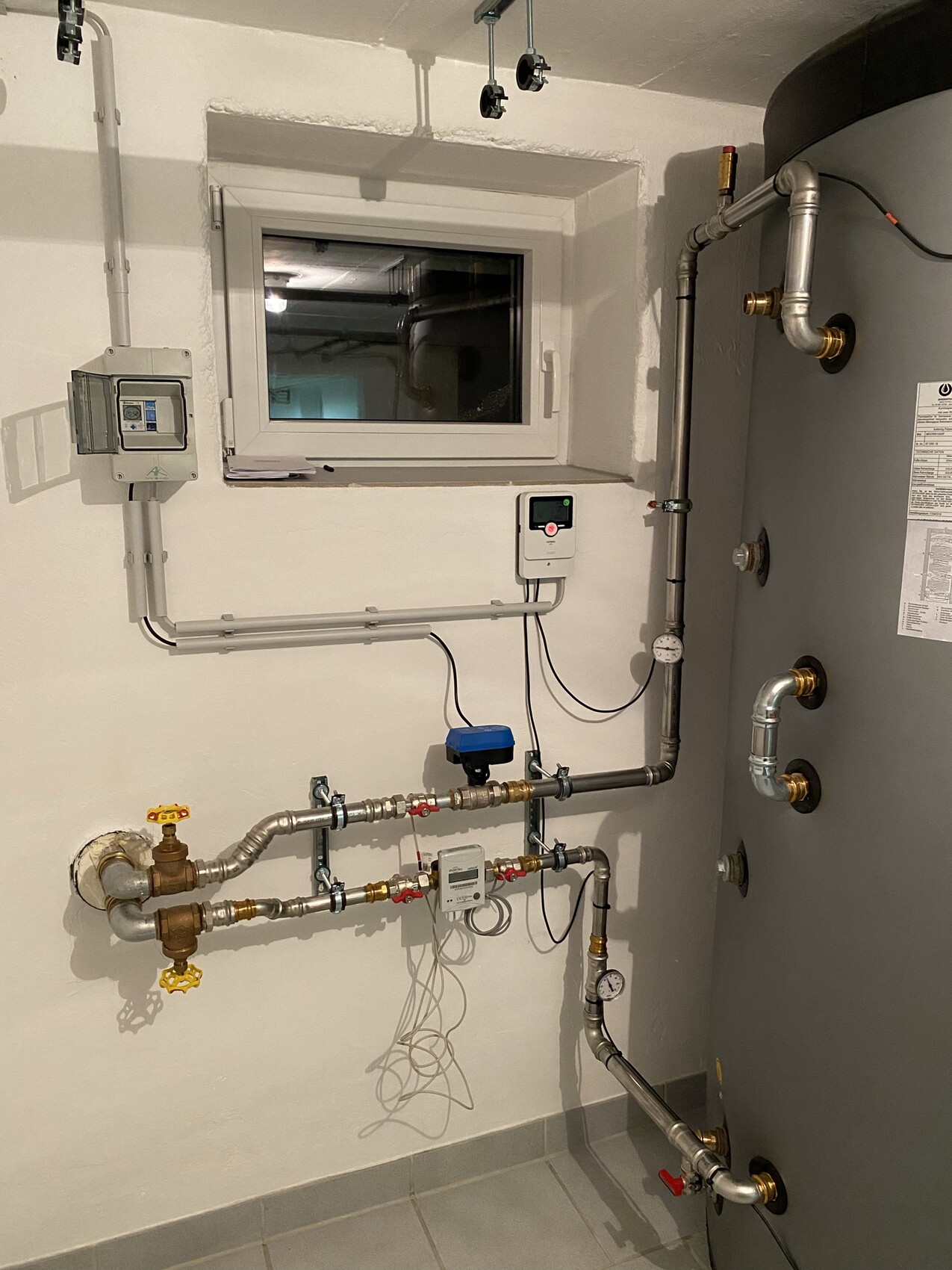 A principios de este año compré una casa usada (año de construcción: 1978). En 2006 se instaló una calefacción de gasóleo y en 2020 se añadió además calefacción urbana. Esta última la recibimos del agricultor vecino a través de una planta de biogás. En el período de abril a noviembre tuvimos un consumo de 35.000 kWh!!! Sin que ninguna calefacción estuviera en funcionamiento. En mi opinión, el alto consumo de energía se debe a las fluctuaciones de temperatura de la calefacción urbana (60 - 90°C). Aquí nuestro acumulador se calienta hasta 90°C y luego la temperatura baja nuevamente a 60°C. Luego 90°C, etc., etc... Como se puede ver en las imágenes, no tenemos una estación de consumo sino un paso directo a través del serpentín de calentamiento de nuestro acumulador. El anterior propietario aparentemente intentó instalar un control con la ayuda de los dispositivos que se ven en las fotos (en realidad adecuados para solar). Actualmente he desconectado la calefacción urbana y opero la calefacción + agua caliente con una fracción de la energía.
