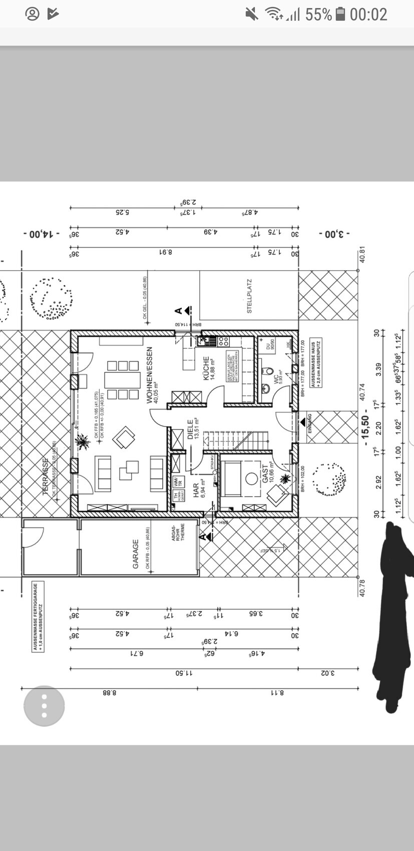 Echad un vistazo a las siguientes cotas de altura, ¿se ha previsto suficiente pendiente hacia la calle? ¡Queremos adoquinar las superficies! (¡Nada de adoquines ecológicos!)