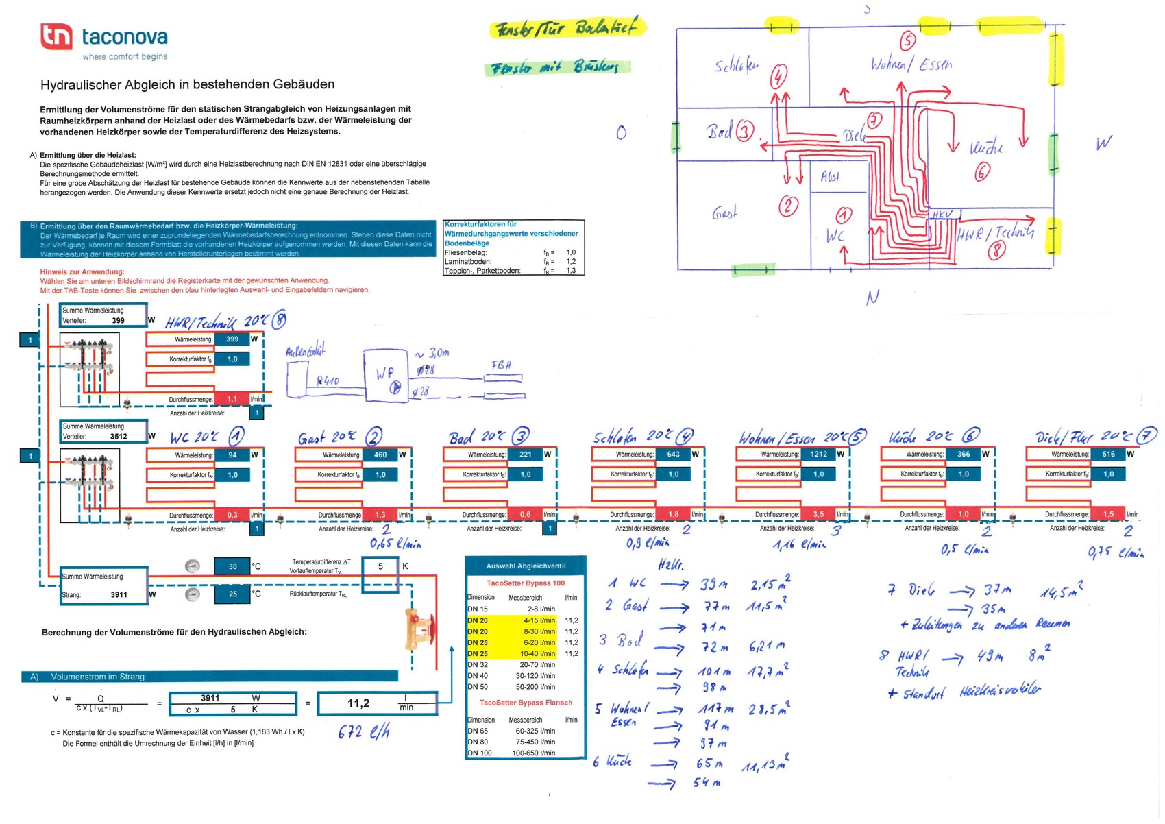 Como ahora vuelven a surgir con más frecuencia los temas relacionados con el balance hidráulico (entre otros, también conmigo), creo que he encontrado una herramienta bastante buena que ayuda a uno (entre otros, también para los miembros del foro que quieren colaborar activamente en el balance) a tener una visión general de su instalación. Además, los datos que hay que introducir son bastante sencillos (en mi caso los he complementado) y tal vez sea útil para otros en el futuro. El origen del archivo Excel se puede ver en el Jpeg (lamentablemente no se pudo subir como PDF) ya que no sé si puedo enlazarlo directamente. Por supuesto, se agradecería cualquier comentario.