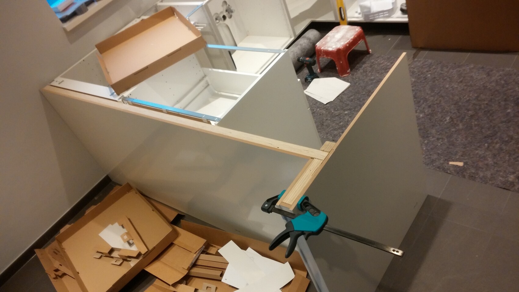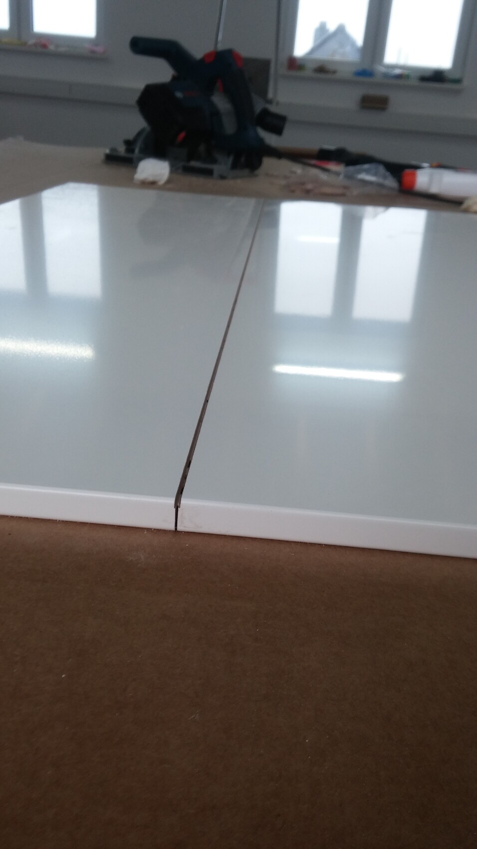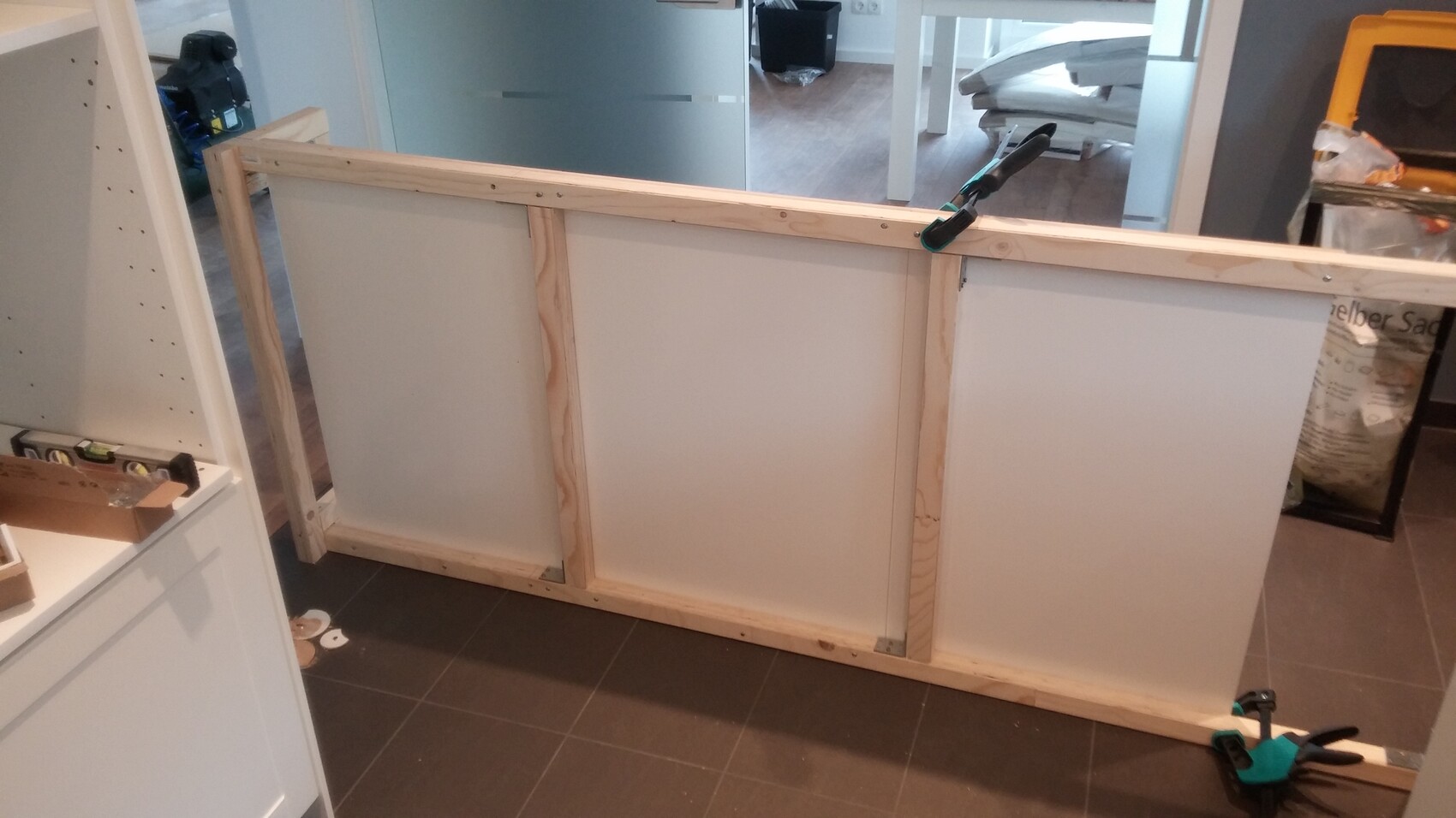estoy buscando una solución para el revestimiento de elementos de cuerpo de los 80 en la parte trasera. En mi cocina en forma de L hay un ala libre en la habitación, probablemente un mueble de esquina inferior (ancho 127,5 cm) y 2 elementos de 60, en total aproximadamente 247,5 cm. Como solo hay una única cubierta lateral con medida de 80 cm (62x80 cm), probablemente tenga que colocar 4 piezas una al lado de la otra y así llego a 248 cm, fijación con las "ayudas de montaje para islas de cocina". ¿Cómo se colocan las cubiertas laterales juntas? ¿"Knirsch", es decir sin junta o cómo...? Claro que tendría que recortar, pero no sería un problema porque tengo el lado cortado de la última placa hacia la pared.