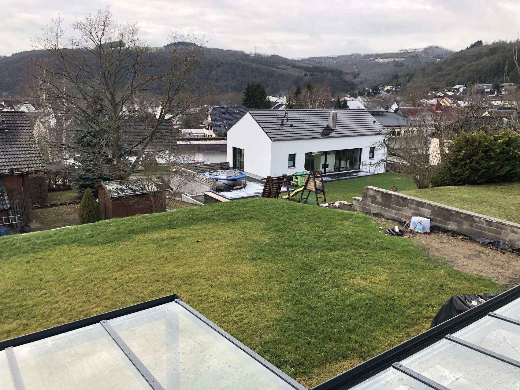nuestros grandes trabajos en la zona exterior están por ahora terminados, el césped ha crecido.