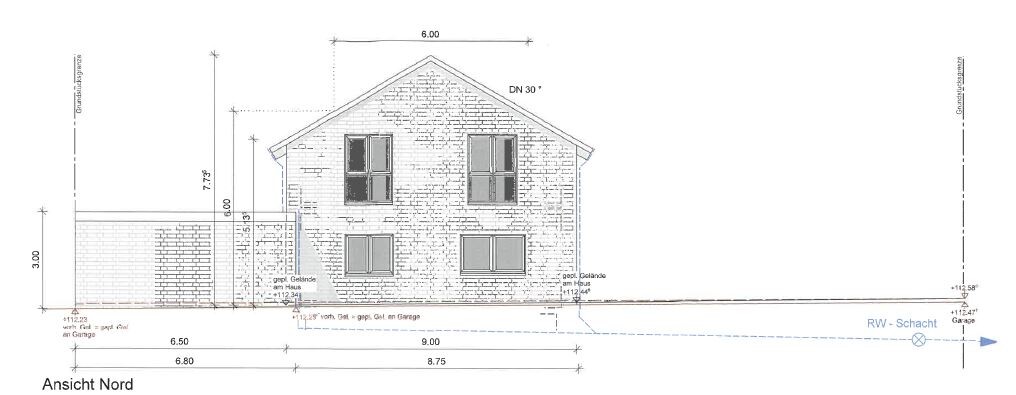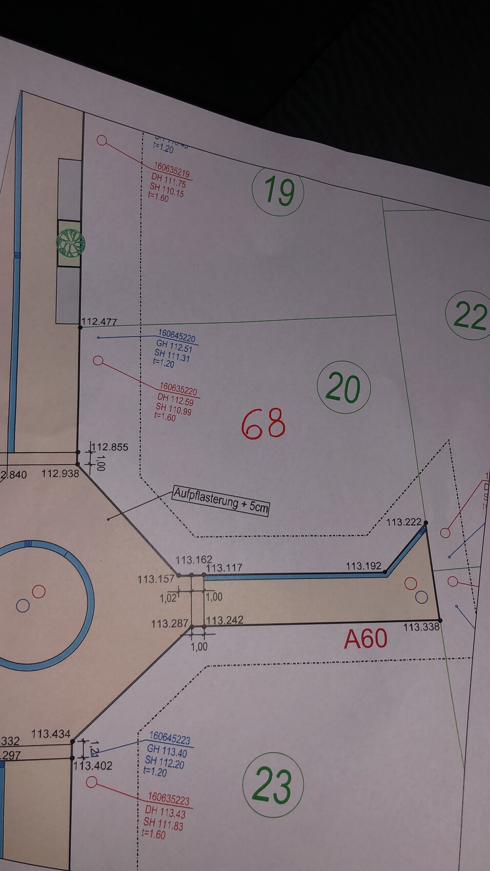 Ahora hemos comenzado con la solicitud de drenaje. Como nuestro terreno tiene una ligera pendiente hacia el norte, la casa está actualmente situada un poco más baja. Esto se debe, entre otras cosas, a que necesito aprovechar cada centímetro de altura en el garaje.