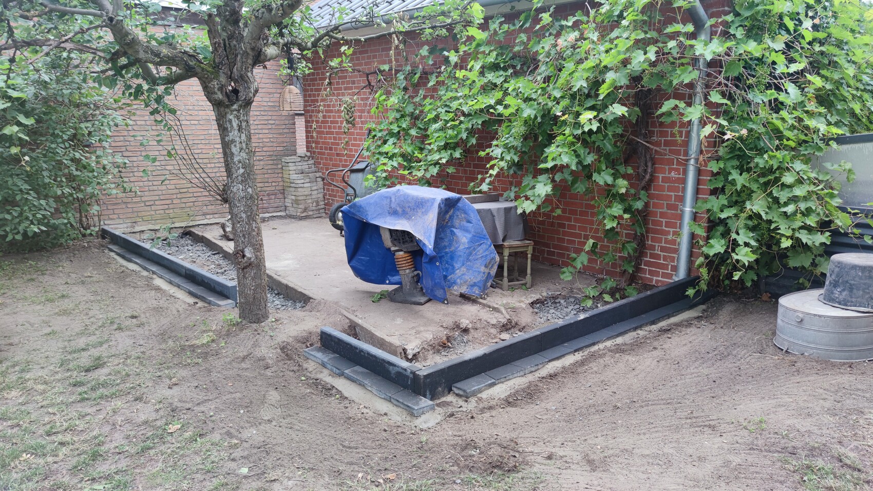 La superficie ya ha sido preparada. La particularidad es que en unos 12 m² aún hay una losa de hormigón antigua (de aproximadamente 3 cm de espesor), es decir, existe una superficie impermeable. El resto de la superficie ya fue preparado adecuadamente con excavación y grava compactada.