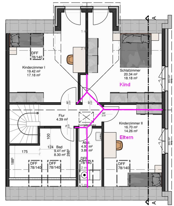 Si no puedes seguirme lingüísticamente allí, lo diré más directo: el plano parece una porquería, planificado con la retícula de vigas de un metro veinticinco típica en esa época para casas prefabricadas. Falta total de imaginación por tres. No encajaba aquí, no encajaba allá, el paso de máquina era así.