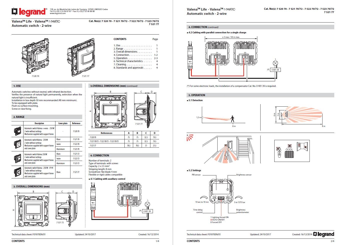 Tenemos el detector de movimiento Legrand Valena Life (752073) de 3 hilos. Si veo la descripción de este BM en Internet en Elektroland dice "Solo para uso individual (no es posible la conexión paralela de sensores)". Al parecer sí es posible, pero tal vez esa sea la razón por la que se rompen o no funcionan correctamente. También existe el 752172 de Legrand pero aquí también dice en la descripción "máx. 2 en paralelo". Y es solo de 2 hilos.