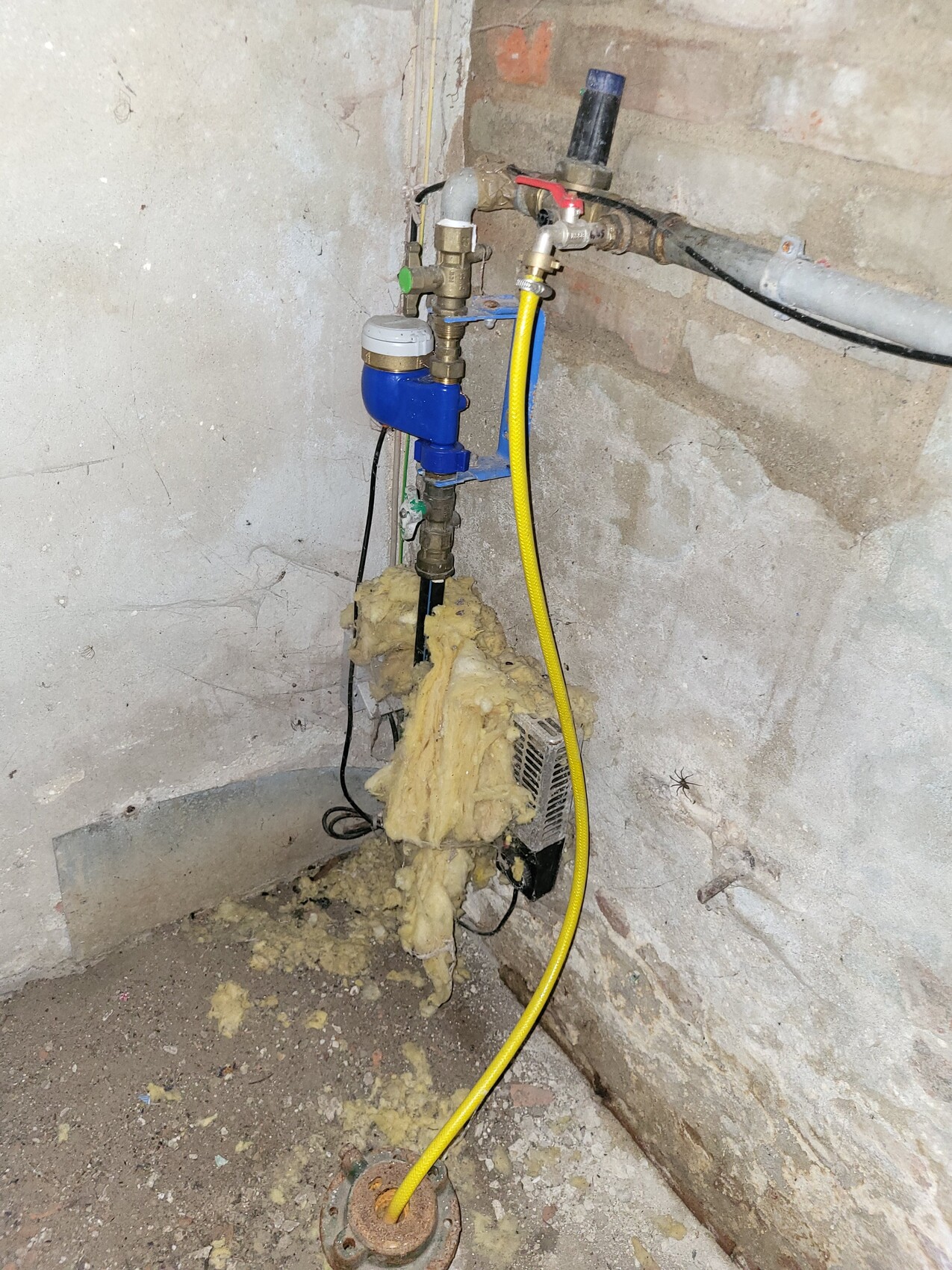 Además, el aislamiento es muy deficiente o incluso inexistente. Hay una calefacción no enchufada en la parte inferior de la caja metálica y una calefacción de acompañamiento a lo largo del tubo, pero el sensor ni siquiera está en contacto con el tubo. La habitación adoptará con cierto retraso la temperatura exterior, ya que no está aislada en absoluto. ¿Qué medidas serían más adecuadas aquí para proteger la tubería?
