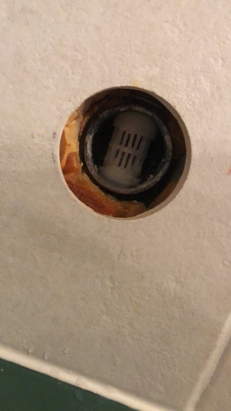 He quitado la tapa y he fotografiado dentro del agujero. ¿Alguien puede decirme qué es? Nunca había visto algo así. Además, siempre parece que algo de agua se filtra detrás de los azulejos, porque el agua del desagüe gotea un poco allí. La bañera no se ha usado durante muchos años.