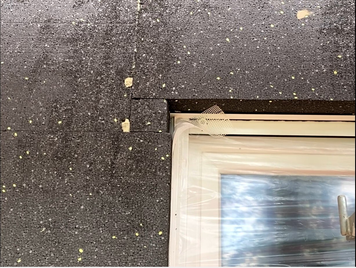 Hoy nos hemos dado cuenta de que el aislamiento de fachada STO WDVS en las esquinas de las ventanas de nuestra casa de promotor inmobiliario no está instalado según las recomendaciones del fabricante. En lugar de cortar las placas para la ventana, se cortaron cuñas, y en algunos casos también hay juntas en cruz.