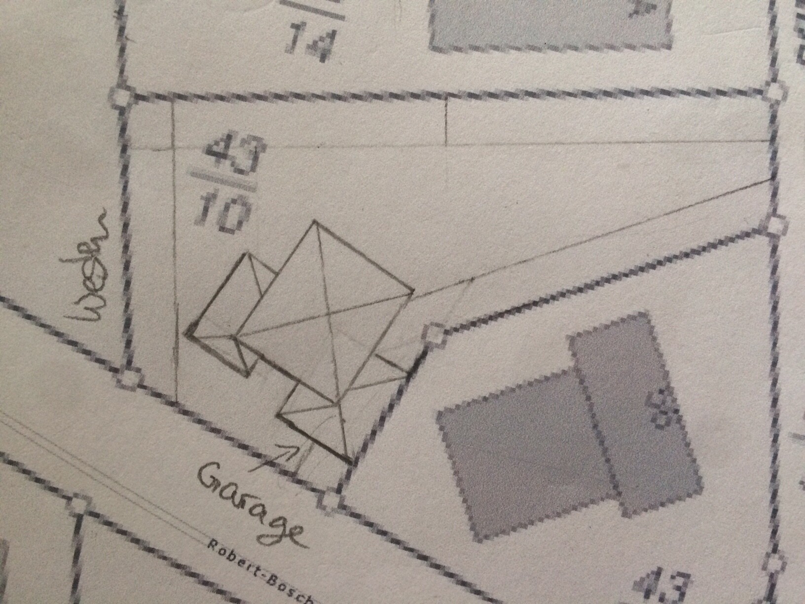 Tengo un terreno a nivel del suelo, que se puede acceder desde dos lados. Pronto tengo que decidir desde dónde quiero la entrada. El terreno aún no está decidido.