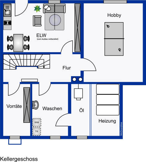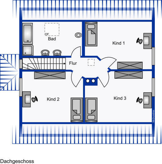 Tejado inclinado con 1,5 plantas, aprox. 150 m² de superficie habitable.