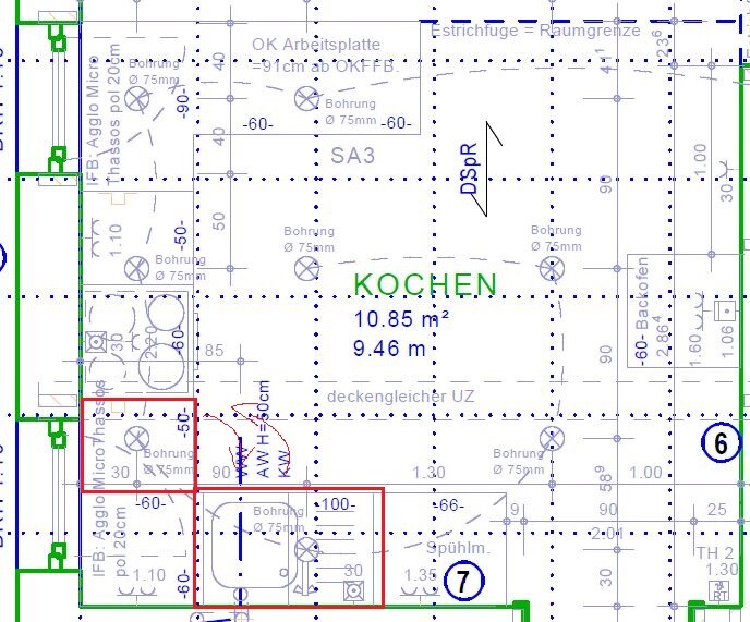 En bas, je l'ai marqué en conséquence. Le coin de la cuisine elle-même est vide, il y a donc l'armoire à côté de l'évier et l'armoire de l'autre côté, coin à coin.