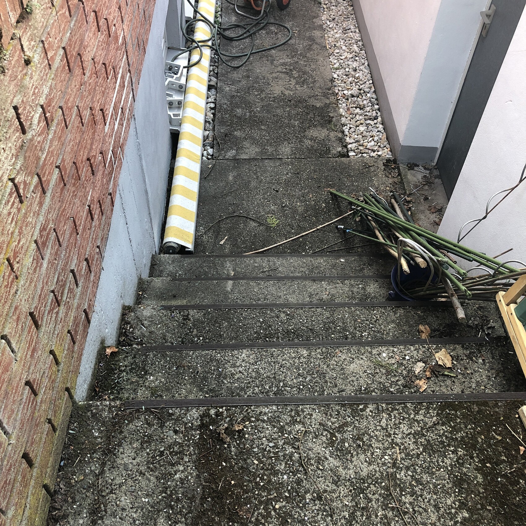 les travaux dans le jardin continuent gaiement. Nous avons un chemin en béton sur le côté de la maison, qui ne me plaît pas du tout visuellement. J’aimerais bien recouvrir le chemin et les marches d’une manière ou d’une autre. Serait-il possible de poser sur le béton des dalles en granit/béton d’environ 2-3 cm d’épaisseur ? Ou avez-vous une idée pour recouvrir/embellir cela ? Merci.