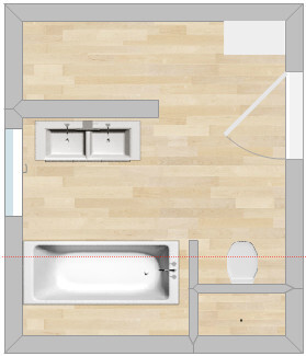 notre salle de bains dans notre nouvelle construction n'est pas très grande. J'ai joint en pièce jointe 3 idées schématiques, mais je ne suis pas vraiment satisfait. La douche devrait être aussi grande que possible (évidemment de plain-pied), la baignoire n'a pas besoin d'être très grande. Un lavabo large ou double serait agréable (mais je pense que le double ne conviendra pas).