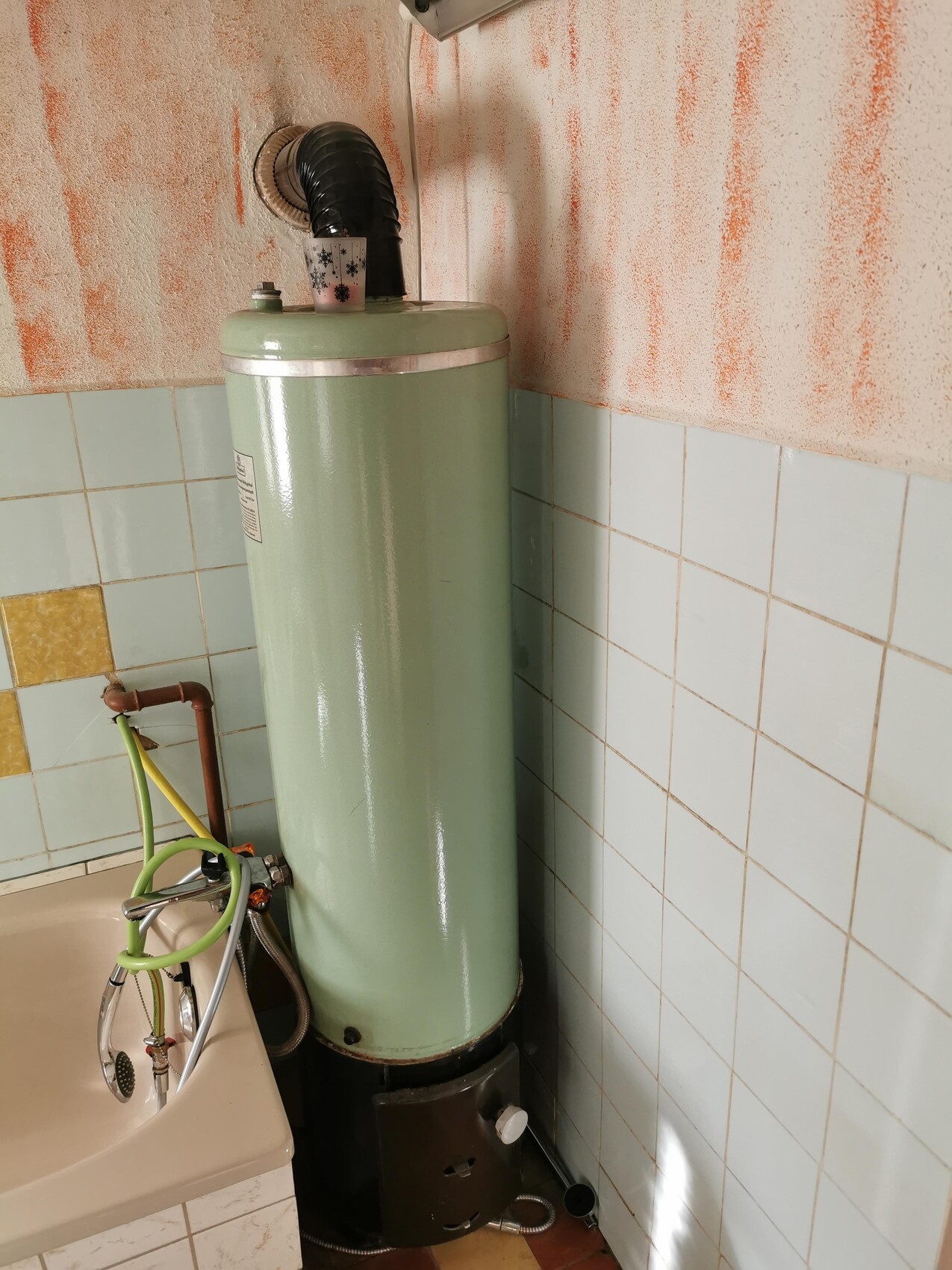 Il doit être uniquement pour la salle de bain où se trouvent la baignoire, les toilettes et le lavabo. La salle de bain avec la douche a un réservoir de 80L qui ne suffit malheureusement pas pour la baignoire. Il n’y a alors qu’un quart d’eau chaude dans la baignoire. Il semble commencer à rendre l’âme.
