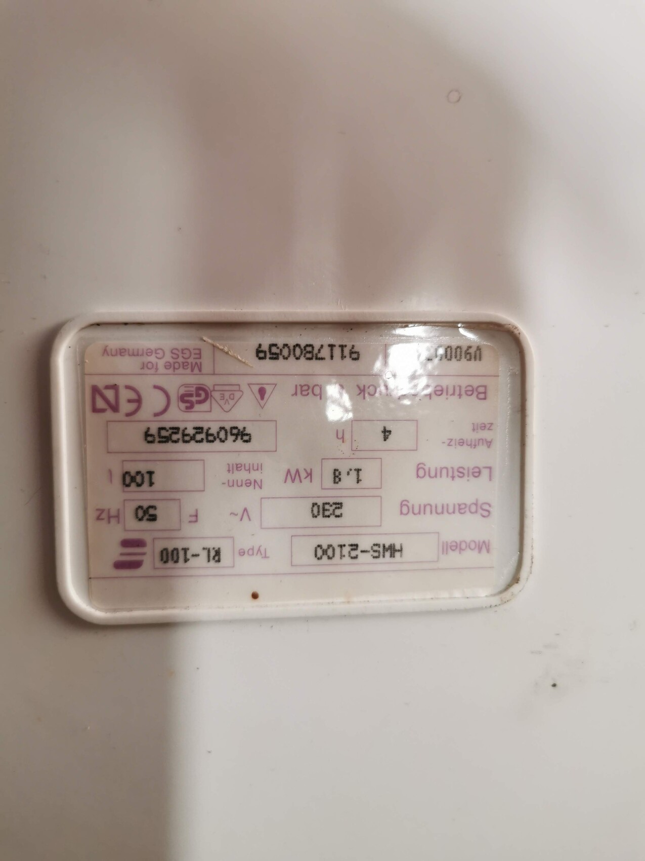 Je me suis procuré sur eBay Kleinanzeigen un WMB ou WWS de 100L (chauffe-eau / ballon d’eau chaude) (ce qui est le plus correct).