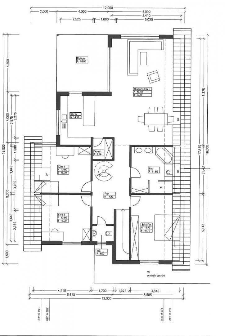 Nous avons déjà une pente de toit et une hauteur sous paroi inclinée de 110 cm à l'étage... le premier décalage de 12 m à 10 m de largeur sert à ce que les deux chambres d'enfants aient une fenêtre "normale"... par une fenêtre de toit, on ne verrait que le ciel bleu... de plus, cela me permet d'avoir une hauteur de mur de 2,6 m dans la cuisine au lieu d'une pente de toit... dans un bâtiment carré, il aurait fallu une lucarne pour utiliser des armoires hautes/ sur le mur dans la cuisine.