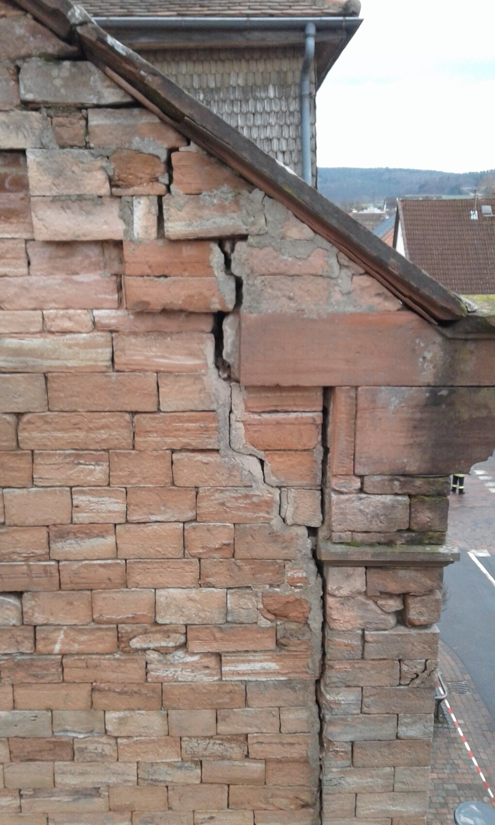 Les fissures se sont développées avec le temps, puis deux arbres ont poussé dans la fissure, ce qui n’a pas amélioré l’état.