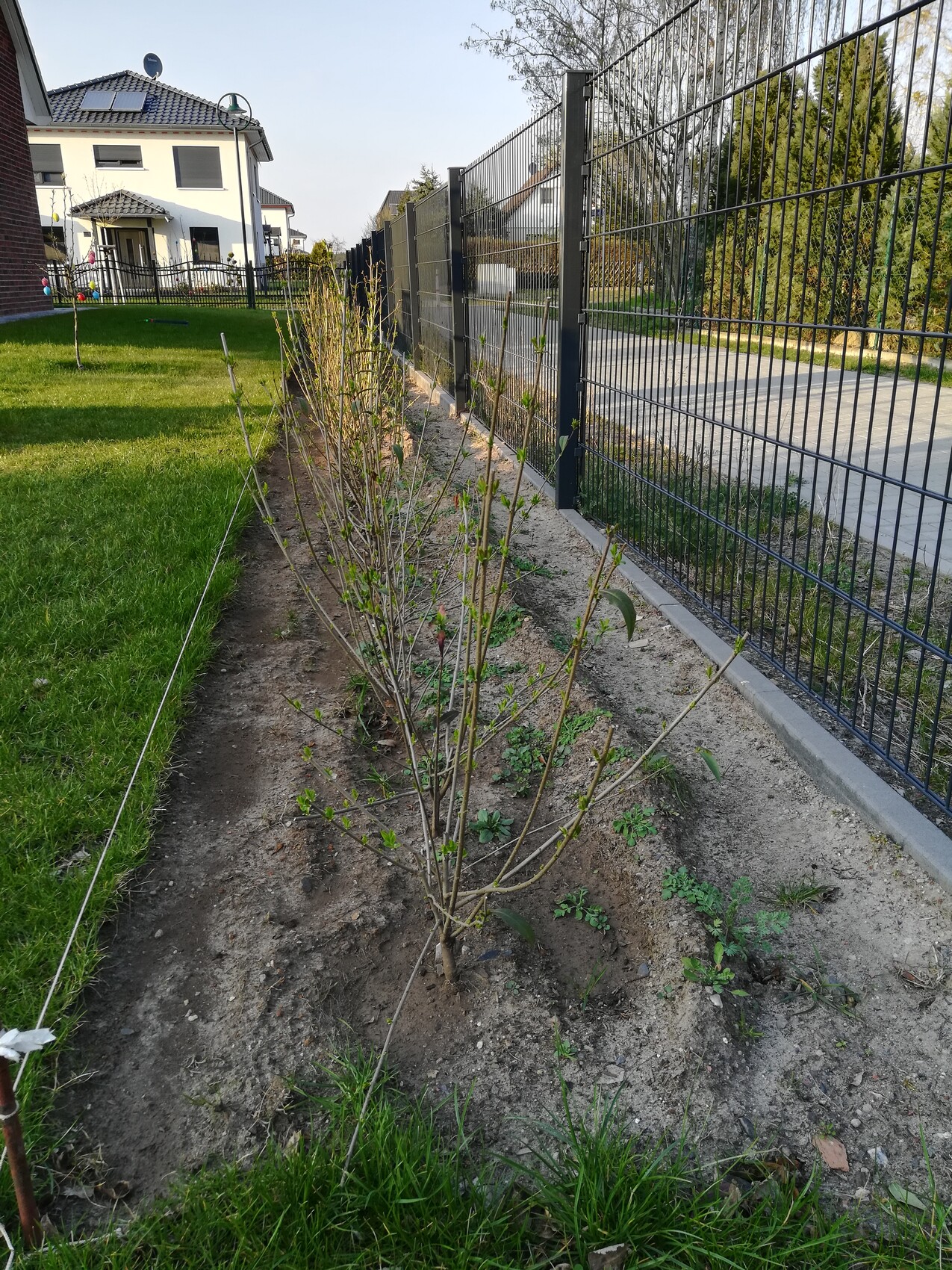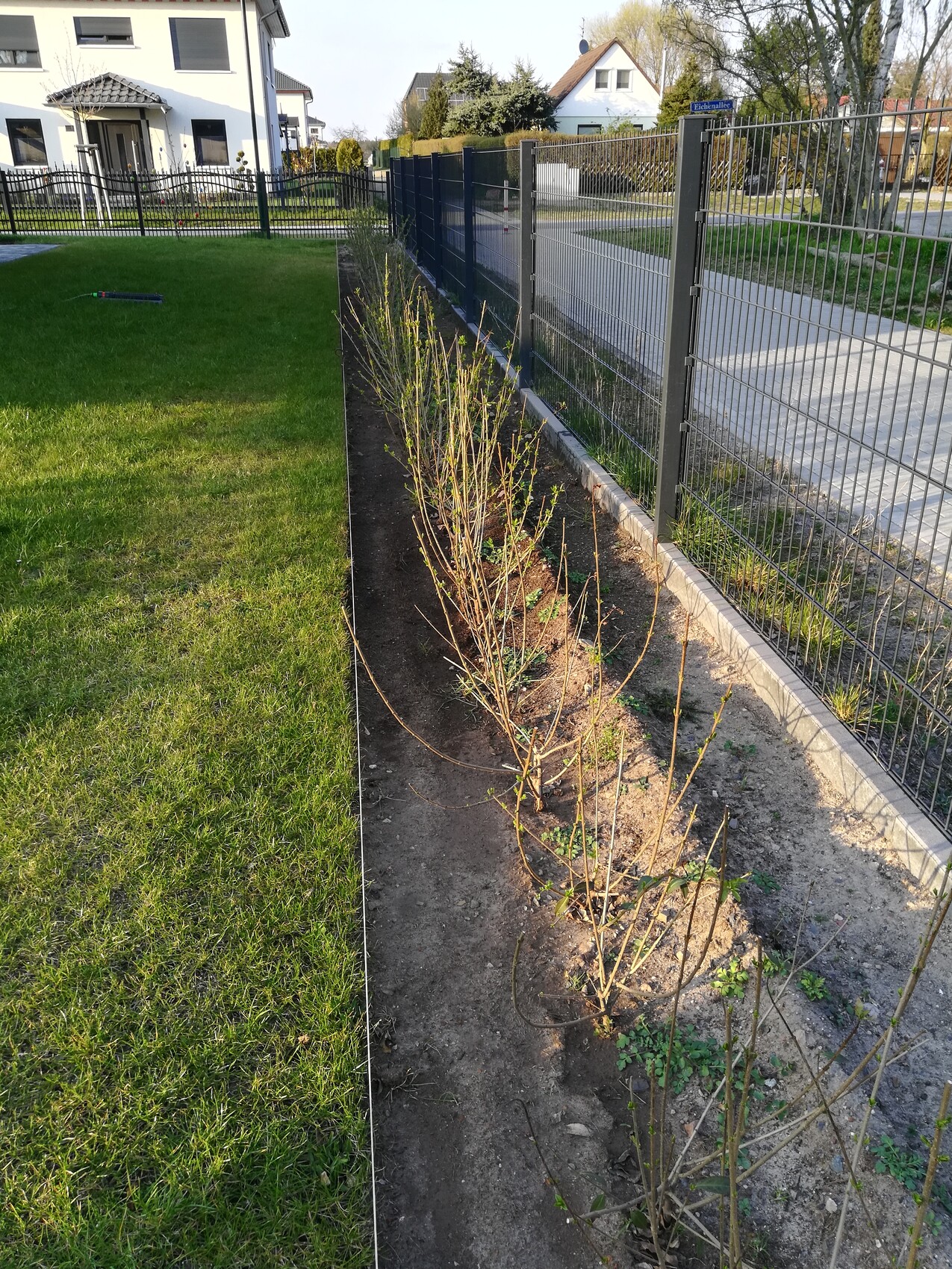 मेरी पत्नी को अधिक प्राकृतिक संक्रमण पसंद है। हेज क्षेत्र को सिर्फ छाल के मल्च से भरना भी संभव है, लेकिन यह सामग्री आसानी से फैल जाती है।
