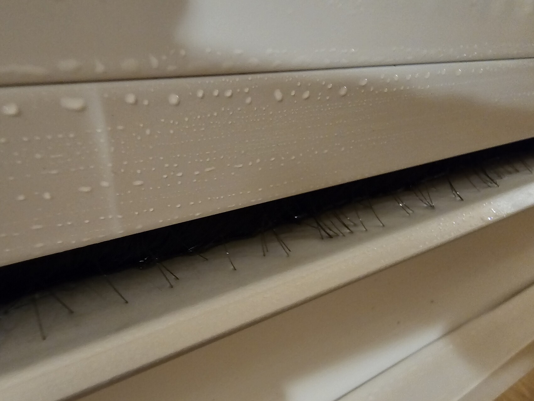 हमारे लिविंग रूम में एक ग्लास फोल्डिंग एलिमेंट है। दुर्भाग्यवश, गाइड रेल पूरी तरह से एल्यूमीनियम की बनी है, जिससे यहाँ एक ठंड का पुल बनता है। इसके अतिरिक्त, इस एलिमेंट में केवल एक ब्रश सीलिंग है, जो वर्तमान मौसम में घर के अंदर बहुत ठंडी हवा अंदर आने देती है, जो सीधे गाइड रेल पर संघनित होती है, और मुझे दिन में कई बार एक कपड़े से अंदर से रेल को सुखाना पड़ता है ताकि फर्श को पानी न लगे।