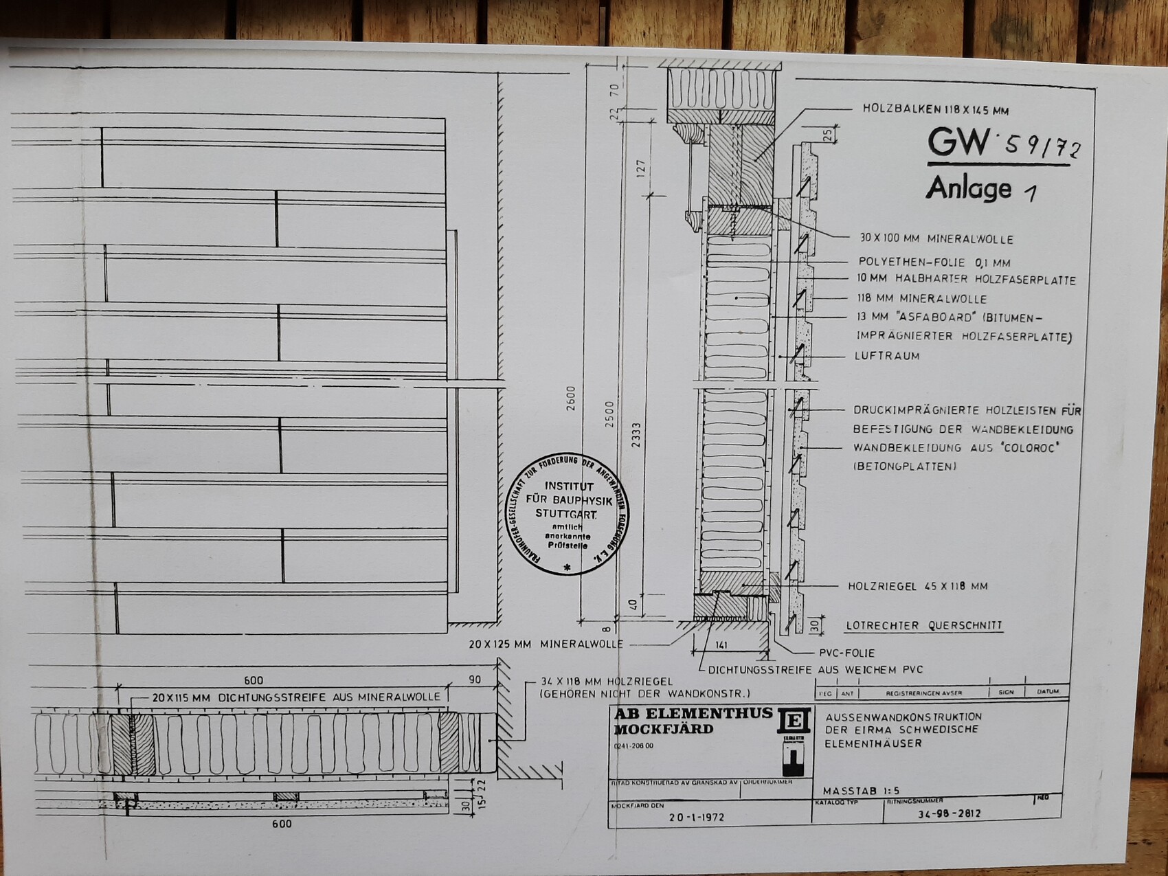 मैं अतिरिक्त पूछना चाहता था कि क्या किसी के पास खासकर मॉकफजार्ड प्रकार के घर की हानिकारक पदार्थों की जांच या समान कोई जानकारी है, जिसे मैं अपनी जांच के लिए संदर्भ के रूप में इस्तेमाल कर सकूँ। मैं इसके लिए भुगतान करने को भी तैयार हूँ। मेरे पास वर्तमान में केवल बाहरी दीवार का एक विवरण है, घर की एक तस्वीर मैं अभी प्राप्त कर सकता हूँ और अपलोड कर सकता हूँ।