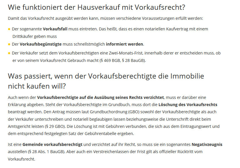 Der Vorkaufsberechtigte ist (eigentlich) vor dem Verkauf über den Vorgang und die Konditionen zu informieren.
