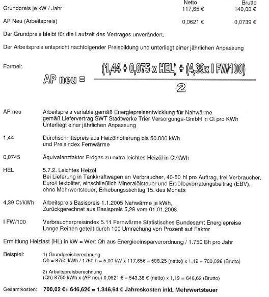 हमारे नए आवास क्षेत्र में केवल Fernwärmenetz से कनेक्शन हैं। कोई अन्य प्राथमिक हीटिंग सिस्टम अनुमति नहीं है। अनुबंध की अवधि 10 साल है और मूल मूल्य निर्धारण 15 साल के लिए निर्धारित है।
