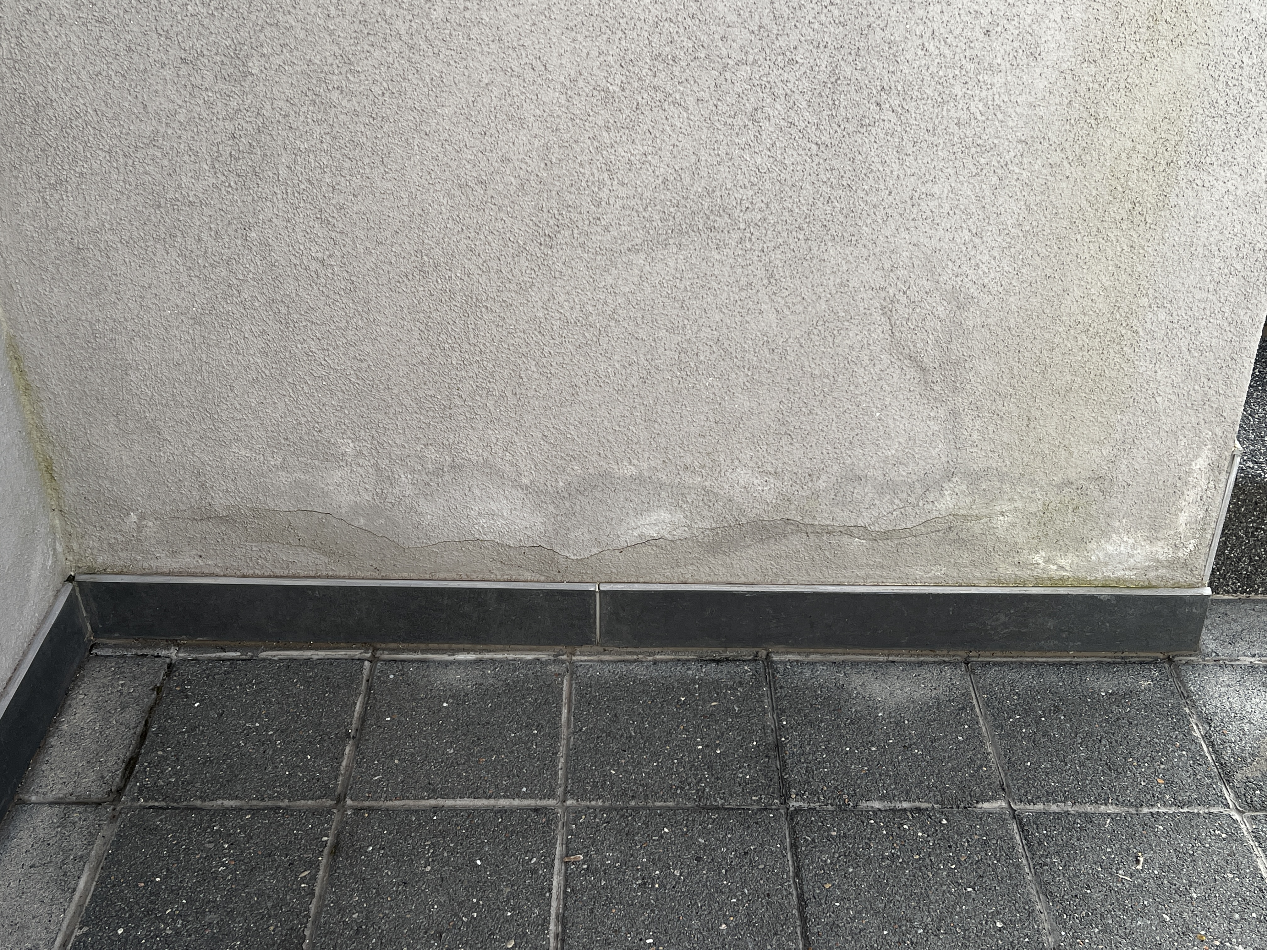 folgendes Problem: an der Außenwand unserer Garage (rechtsseitig mit angebautem Treppenaufgang) habe ich immer wieder Winterschäden in der Form, dass überall der Verputz aufplatzt. Bislang war der Verputz vom Vorbesitzer wohl direkt bis auf den Boden, bzw. die Treppenstufen gezogen worden. Letztes Jahr hatte ich dann in guter Absicht Sockelfliesen am Treppenaufgang angebracht in der Hoffnung, dass es dadurch besser wird. Im Ergebnis ist es jetzt schlimmer als jemals zuvor. An zahlreichen Stellen ca. 20 bis 30cm über der Sockelfliese gibt es großflächige Bruchstellen.