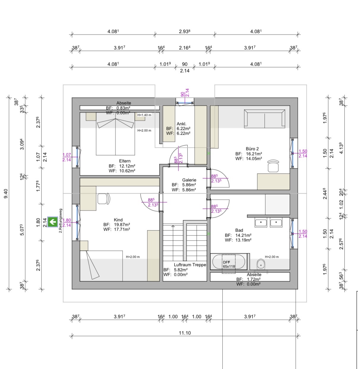 Die Fenster wurden breiter und der Kniestock erhöht. Das Bauamt hat positive Signale gesendet aber erst die Voranfrage wird klären ob der etwas höhere Kniestock auch durchgeht.