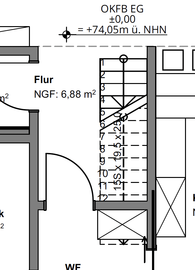aktuell sind wir 6 Monate vor Baubeginn eines Fertighauses mit der Fa. Isowood in 53332 Bornheim. Für das Haus ist eine Betonfertigtreppe geplant. Diese soll in Faltwerkoptik verkleidet werden und es soll ein passendes Glasgeländer angebracht werden. Diese beiden Posten wollen wir gerne extern vergeben. Hat hier jemand eine grobe Preiseinschätzung bzw. ein solches Vorhaben bereits vollständig oder auch nur in Teilen (Nur Faltwerk oder nur Glasgeländer) umgesetzt? Hier würden wir uns auch gerne insbesondere um die Abstimmungsprozesse mit Isowood austauschen. Es handelt sich um eine gerade Treppe von EG ins OG. Habe mal ein Bild der geplanten Treppe im Grundriss angehangen.