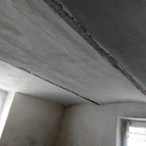 Die Wände sind aus Kieselsteinbeton und wurden vor 16 Jahren mit Kalkzementputz und Kalkschlemme neuverputzt, weil der alte Putz ausgeblüht und abgefallen ist.