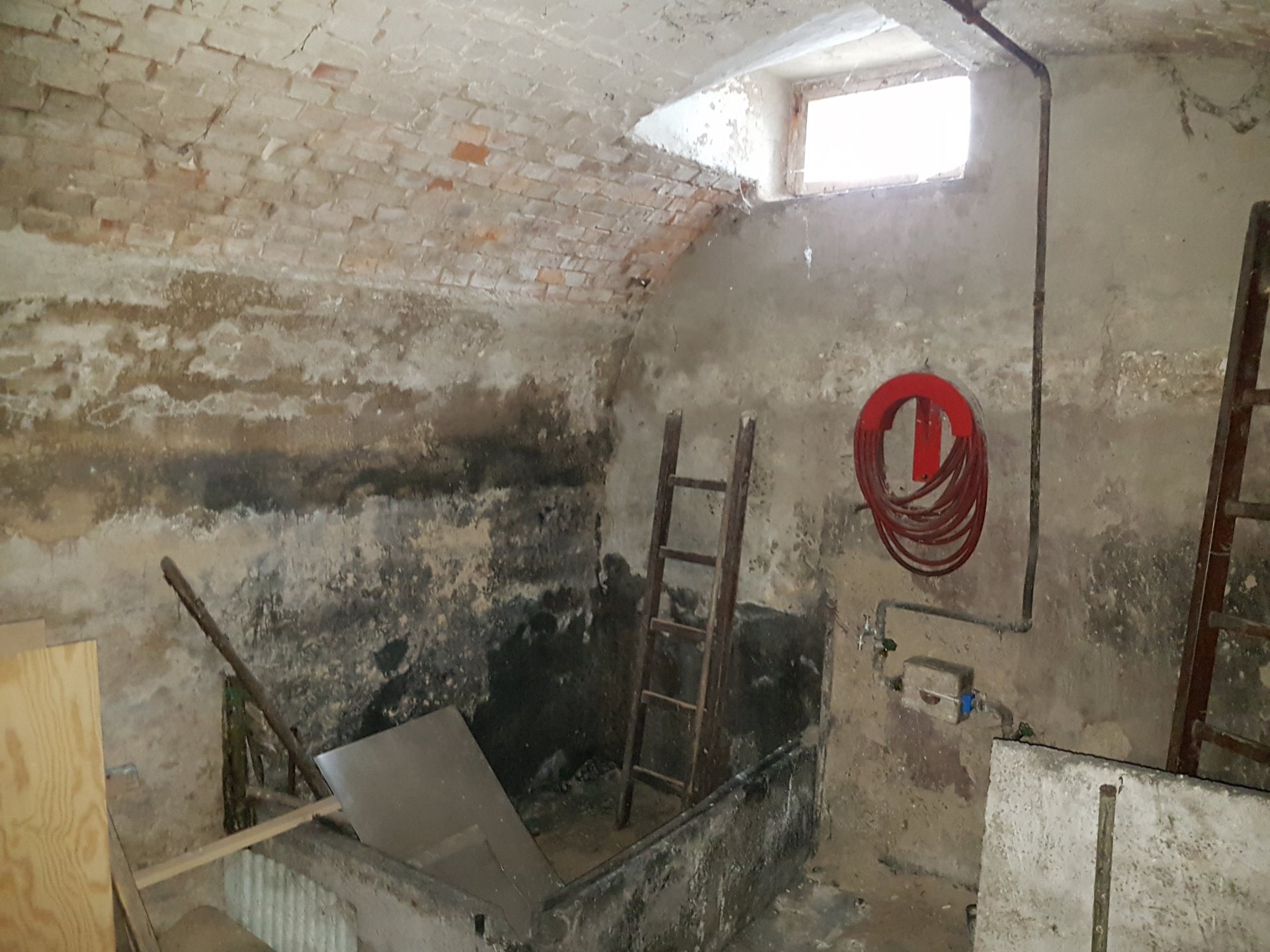 Das Haus ist nur teilunterkellert, ungedämmt auf 3 Seiten zur Straße und Garten und steht wahrscheinlich auf einem Streifenfundament. Luftfeuchte ist 70%. Daneben befindet sich ein Ziegel-Gewölbekeller auf Erdreich mit 90% Luftfeuchte.