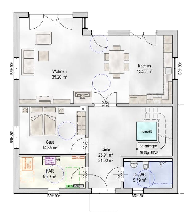 Raumbedarf im EG: Gästezimmer (nicht verhandelbar da regelmäßiger und viel Besuch über Nacht), Gästebad mit Dusche, Hauswirtschaftsraum, Wohnessbereich mit offener Küche
