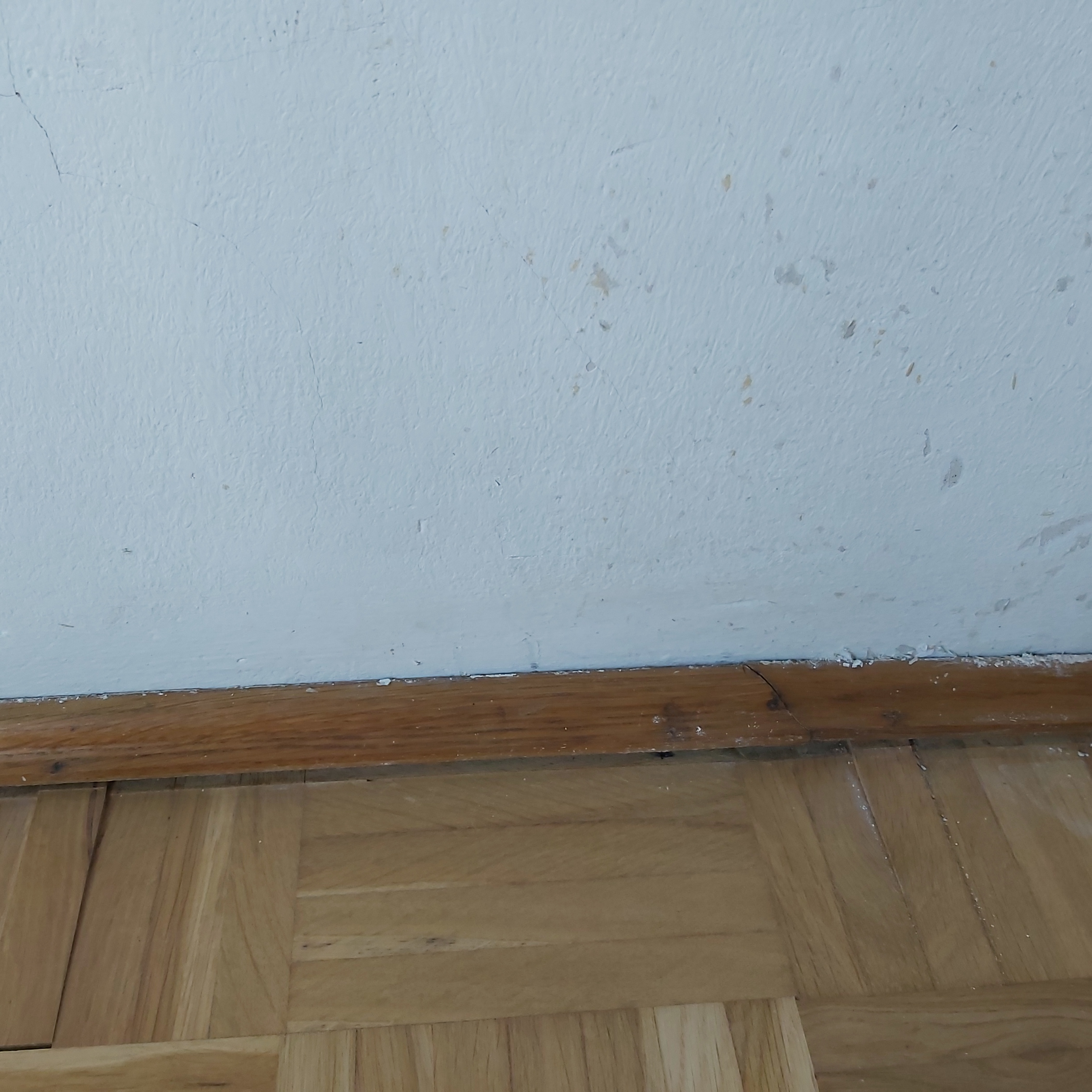 ich möchte meine Wand wegen Rissen im Putz und einzelnen Löchern neu glatt spachteln. Auf dem Boden befindet sich Parkett, der zur Wand klassisch mit Fußbodenleisten abgeschlossen wurde. Die Fußbodenleisten sind direkt auf den Parkett aufgeklebt und in regelmäßigen Abständen mit einem Nagel in den Parkett fixiert worden, d.h. zur Wand hin gibt es keine Befestigung.