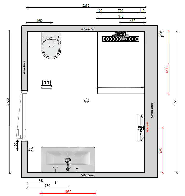 Von der Raumgröße her passen 45 cm Länge in 5x6 Reihe perfekt rein. Bei Wandfliesen mit 45x22.5 sind WC und Dusche dann "mittig" mit den Fugen ausgerichtet. Wenn die Bodenfliesen dann 60x60 sind, lässt sich das mit der Länge der Dusche von 120 cm gut lösen und hat dort möglichst wenige Fugen am Boden.