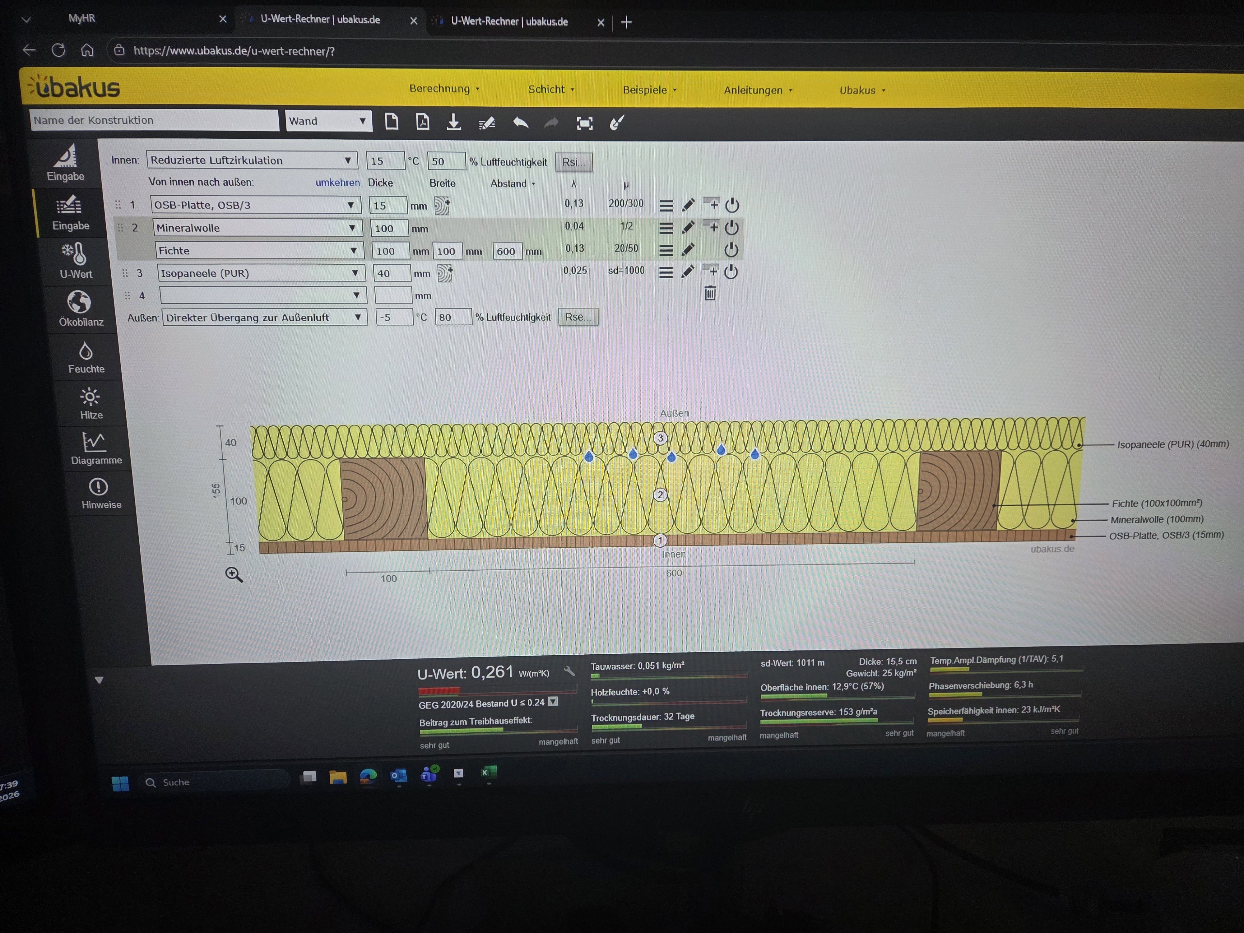 40mm Sandwichpaneel bedeutet außen meist ziemlich dicht, ob bewusst oder konstruktiv ist egal, die Feuchte kommt jedenfalls nicht mehr weg. Wenn du dann innen nochmal 10–12cm Dämmung reinpackst und mit 15mm OSB zumachst, baust du dir im Zweifel eine zweite Bremse ein, die bei gelegentlicher Beheizung nicht sauber funktioniert. Dauerhaft warm oder dauerhaft kalt wäre einfacher, dieses „ab und zu richtig heizen“ ist bauphysikalisch halt der Klassiker für Tauwasser. OSB kann funktionieren, aber nur wenn Luftdichtheit wirklich ernst genommen wird, jede Schraube zählt da mit. Dämmstoffwahl ist auch nicht egal, diffusionsoffen hilft ein bisschen, zaubern kann sie aber nicht. Ubakus zeigt dir vermutlich irgendwo rote Zahlen, die man gern weginterpretiert, das wäre hier keine gute Idee.