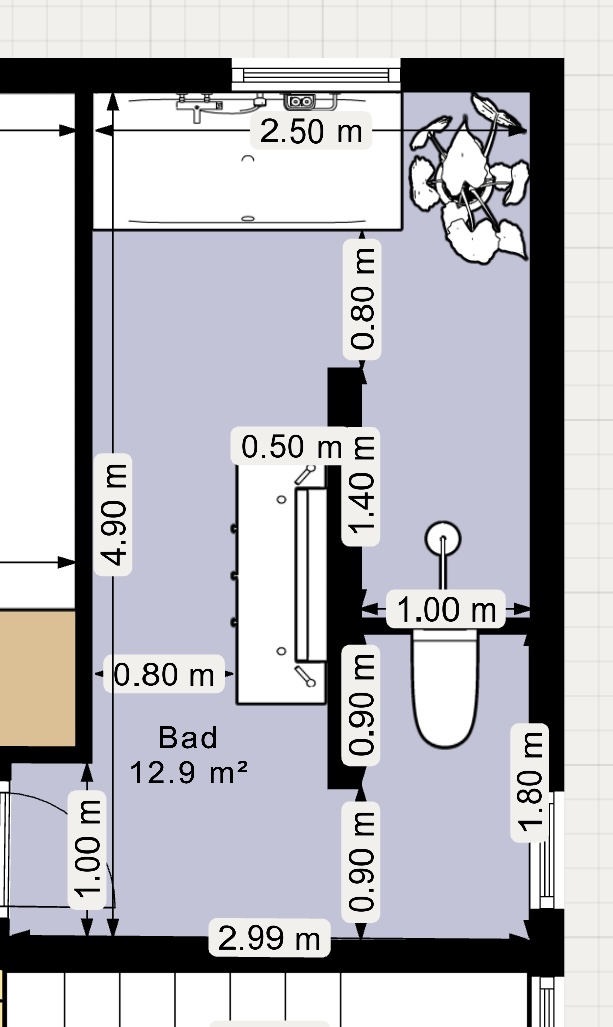 ich plane gerade unser Bad und würde mich sehr über euer Feedback zu dem Layout freuen (siehe Plan/Skizze im Anhang Bild 1/2)