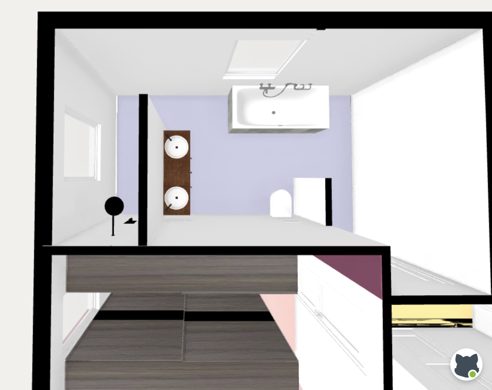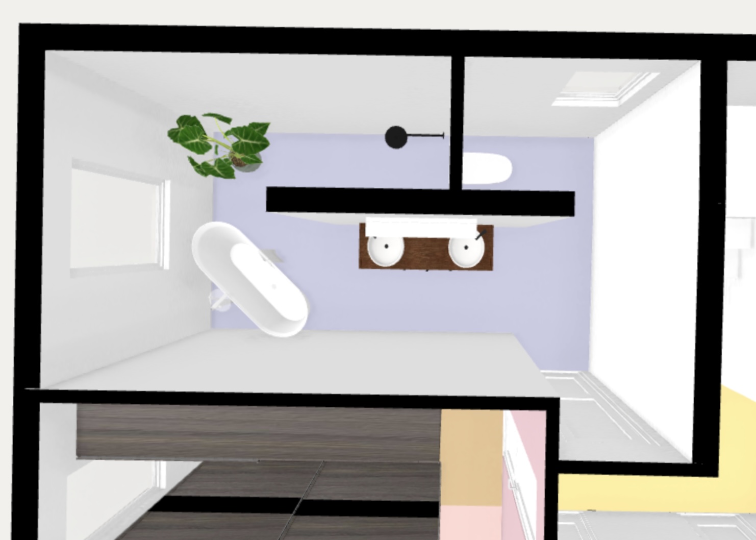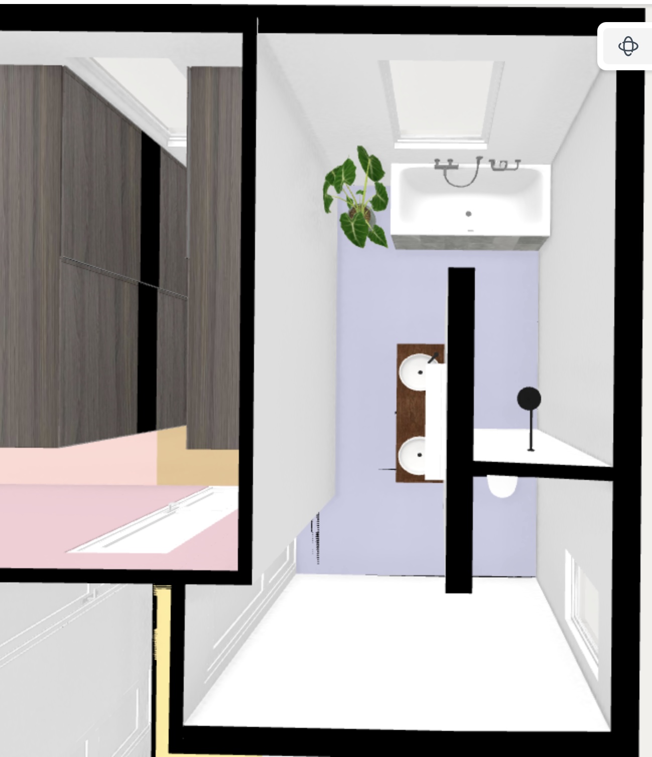 Wie würdet ihr die Badewanne in so einem Setup am besten platzieren? Gibt es eine Position, die sich aus eurer Sicht klar anbietet (z. B. wegen Laufwegen, Optik, Spritzwasser, Komfort, Raumgefühl)? (siehe Anhang Bild 3/4 bzw. 5/6)