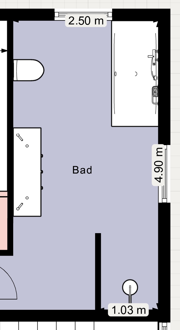 • Und wo wird es eurer Meinung nach eng bzw. grenzwertig – also noch „okay“, aber nicht mehr komfortabel? (Durchgang, Dusche — Badewanne)