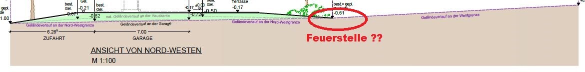 Ja die Feuerstelle, da haben wir auch schon überlegt diese ins Dreieck zu setzen, ich häng mal den Höhenplan vom Grundstück an, am einfachsten wäre es, wenn die FS in der Grundstückmitte (zwischen Haus und Grundstücksende gesehen) Länge, da dort der tiefste Punkt ist und wir nicht zu tief graben müssten.