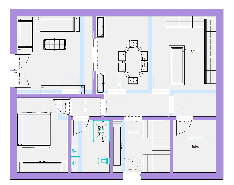 Sollte das Haus später geteilt werden, kann z.b das Wohnzimmer abgetrennt werden. Zwei Personen brauchen nicht so einen großen Allraum.