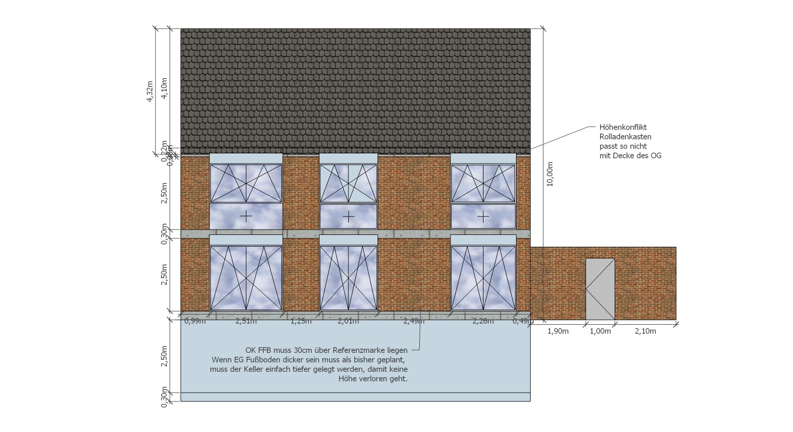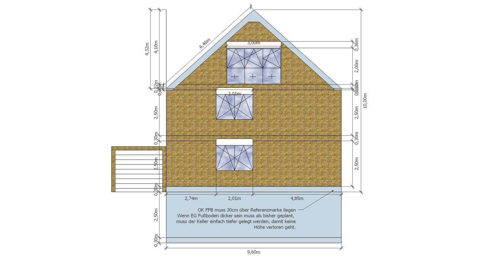 Dient nur zur Ideenfindung. Die Entwässerung des Kibas ist völlig fraglich. Ich weiß bloss nicht, ob das letztendlich günstiger wäre. Dazu müsste es noch erheblich schrumpfen, denke ich. Umbauter Raum vs. ausgebauter m² - ich seh da schwarz gegenüber der 12m-Variante ohne Dachausbau.
