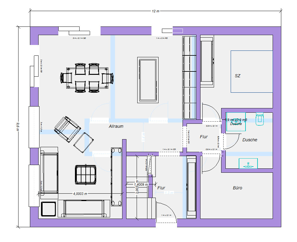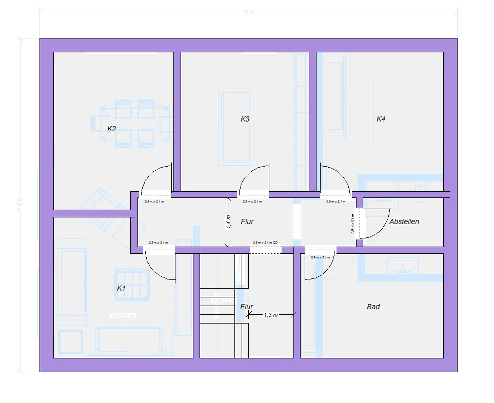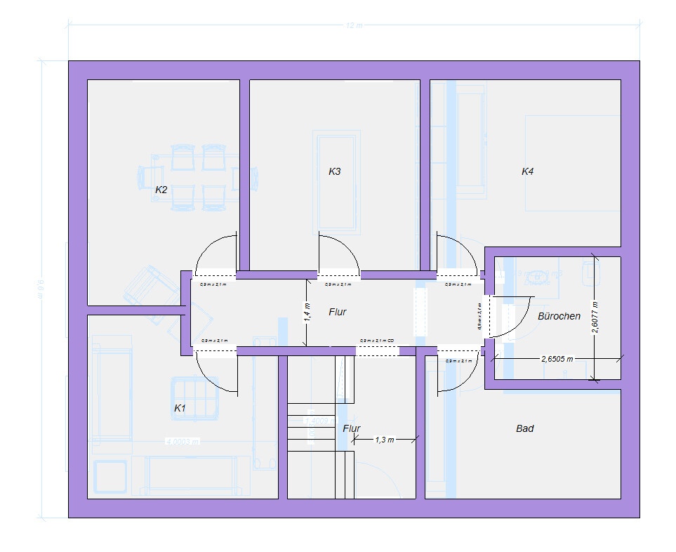 ...und würde das mit der Treppe ins DG auch passen (Maria-Problem)?Huch, die 12m hatte ich überlesen. Ja dann reichts unten nur für eine Dusche, was budgettechnisch aber vermutlich sowieso besser wäre. Das 2. Büro fliegt leider zu Gunsten des großen Bades raus. Dafür bleibt tatsächlich nur der Dachboden.Treppenproblem von Maria seh ich hier nicht. Auch bei Deinem Entwurf nicht.