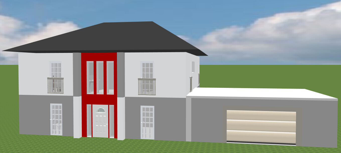 Anhand eurer Anregungen habe ich noch einmal ein paar Veränderungen an dem Grundriss vorgenommen. Manche Zimmer wurden verkleinert und dadurch neuer Stauraum geschaffen, Fenster fielen weg bzw. wurden ersetzt und ich habe eine extra Aussparung für eine Garderobe geschaffen.