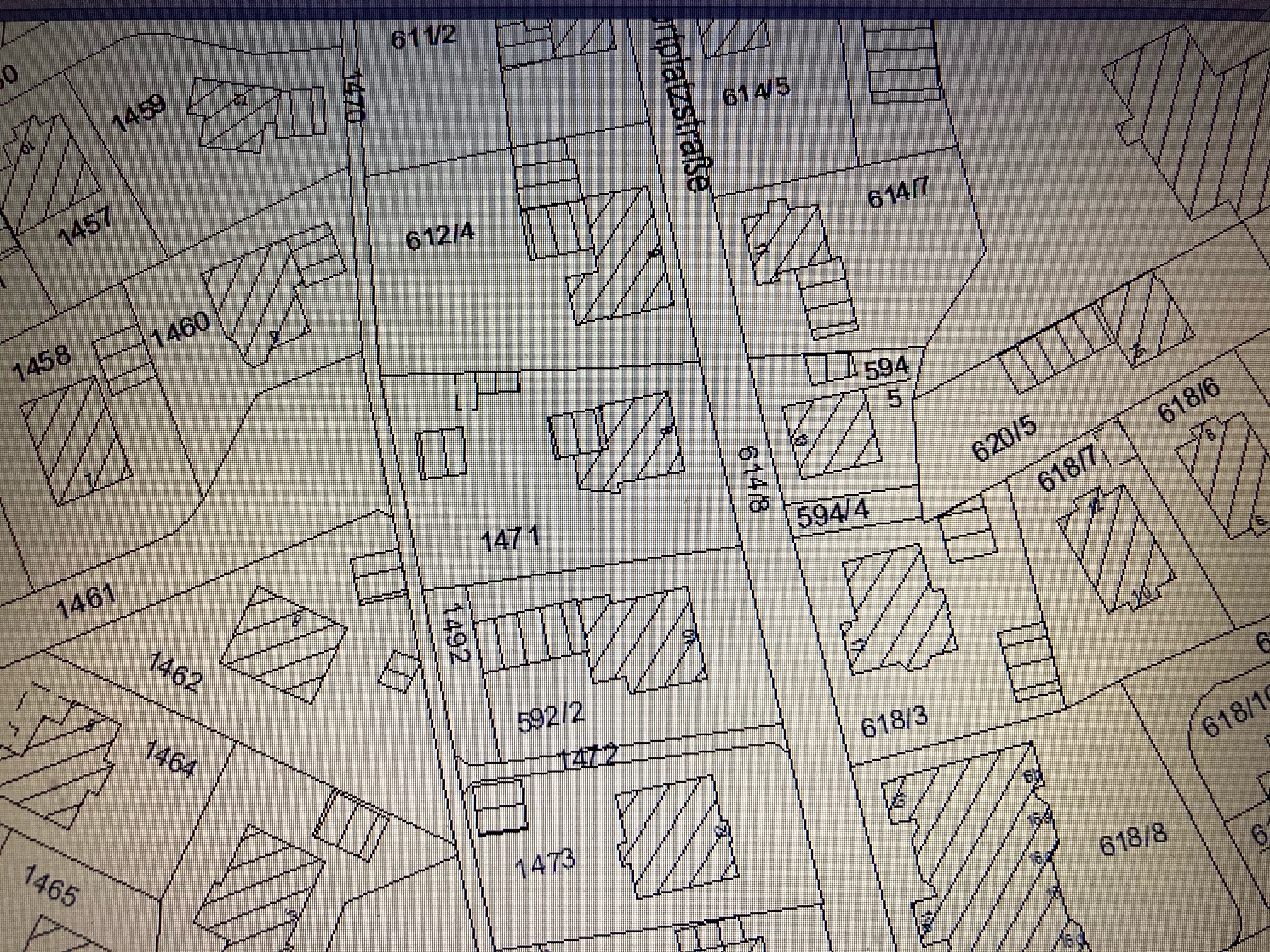 : Wir wollen das Grundstück vor der Bebauung erst teilen lassen. Genau, mit dem Wort "Kettenhaus" dachte ich an Garage/Haus/Garage/Haus. Zugang ist auf jeden Fall von der Sportplatzstraße aus.